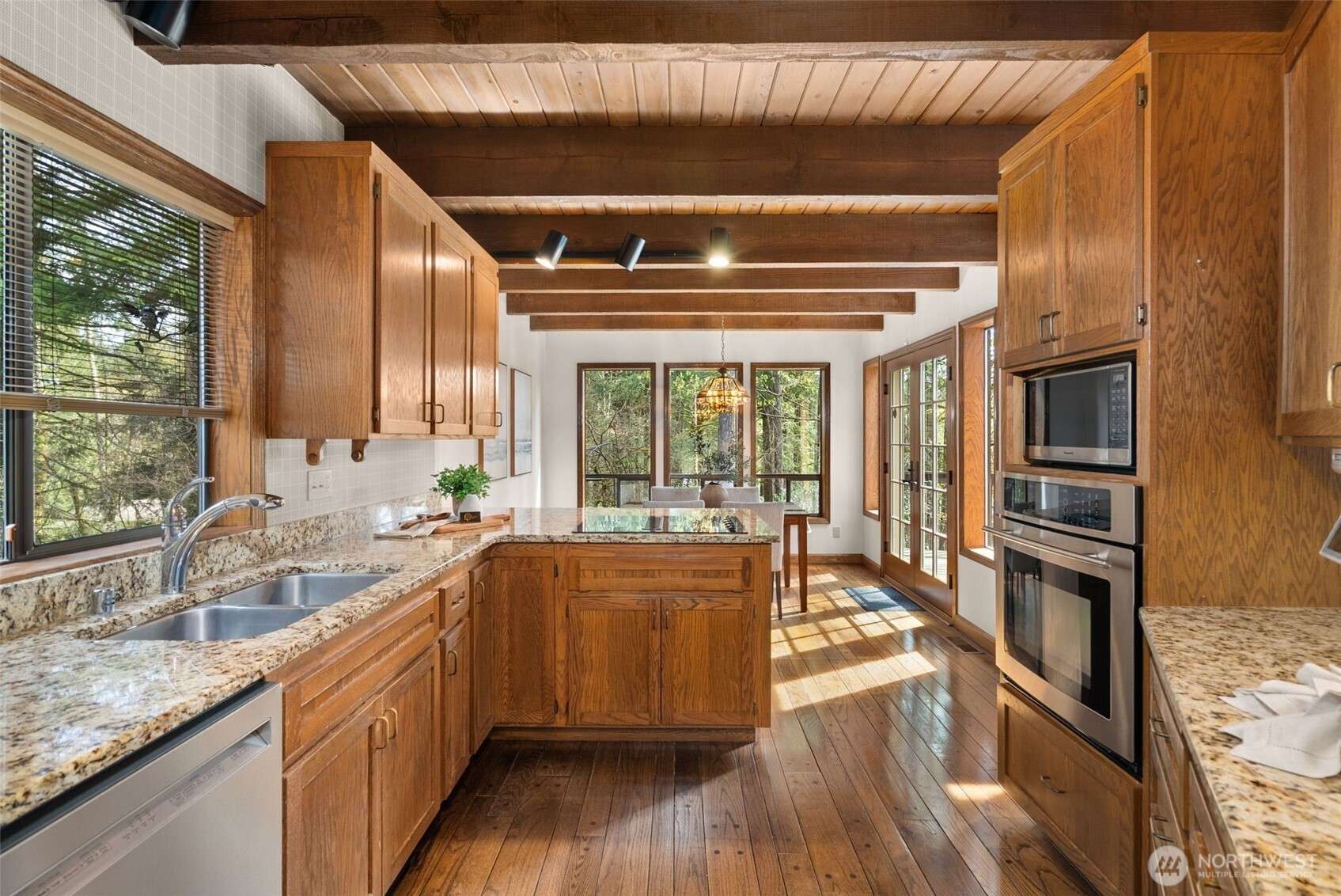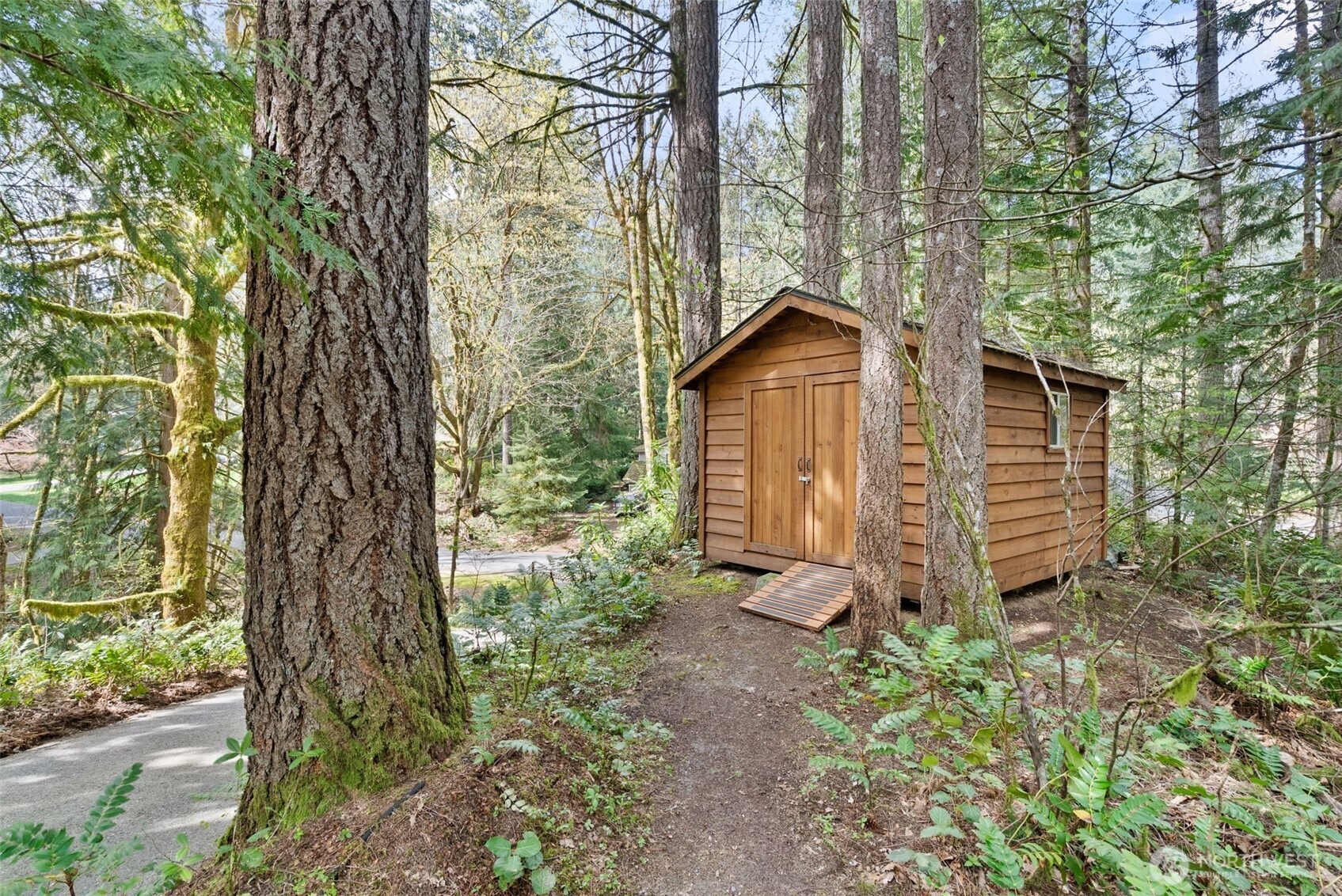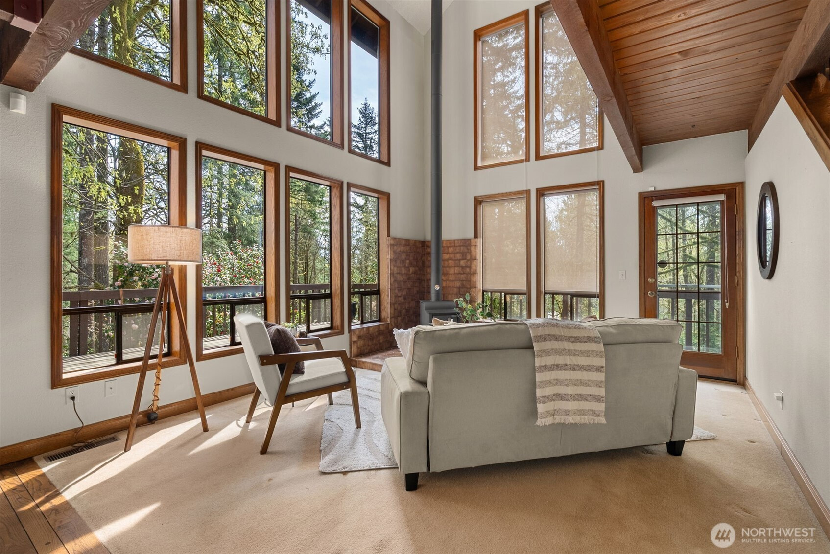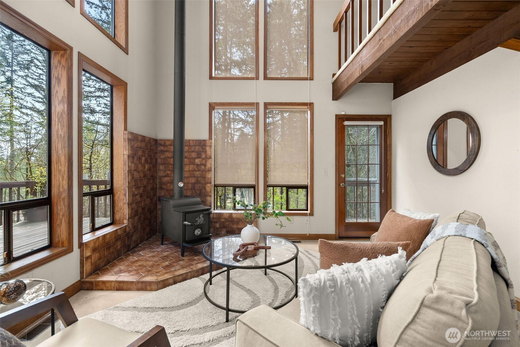 (650)533-3259A true Northwest Contemporary retreat set on just over an acre in Alpine Hills, where mature evergreens and natural surroundings create a setting that feels more like a private park than a traditional homesite. Walls of windows draw the outdoors in, filling the home with natural light and offering a constant connection to the landscape. The architecture is both distinctive and functional, with a main level bedroom and full bath that provide flexibility for guests or multi-generational living. The kitchen features updated appliances and granite countertops, complemented by classic oak cabinetry and a layout that opens to the dining area and deck, creating an easy flow for everyday living and gatherings. Upstairs, the primary suite is a standout, featuring a vaulted ceiling, a spa-inspired bath with a soaking tub, full tile dual headed shower with skylight, and a private hot tub ready deck tucked into the trees. A loft space overlooking the main living area adds versatility, along with a third bedroom positioned on the upper level. Outdoor living is just as compelling, with expansive decking that invites you to relax, entertain, or simply take in the peaceful surroundings. The wooded setting offers privacy and a sense of escape, while still being within convenient reach of nearby amenities. A rare opportunity to experience Northwest living in its most authentic form, where architecture and setting come together in a way that feels both timeless and truly special.