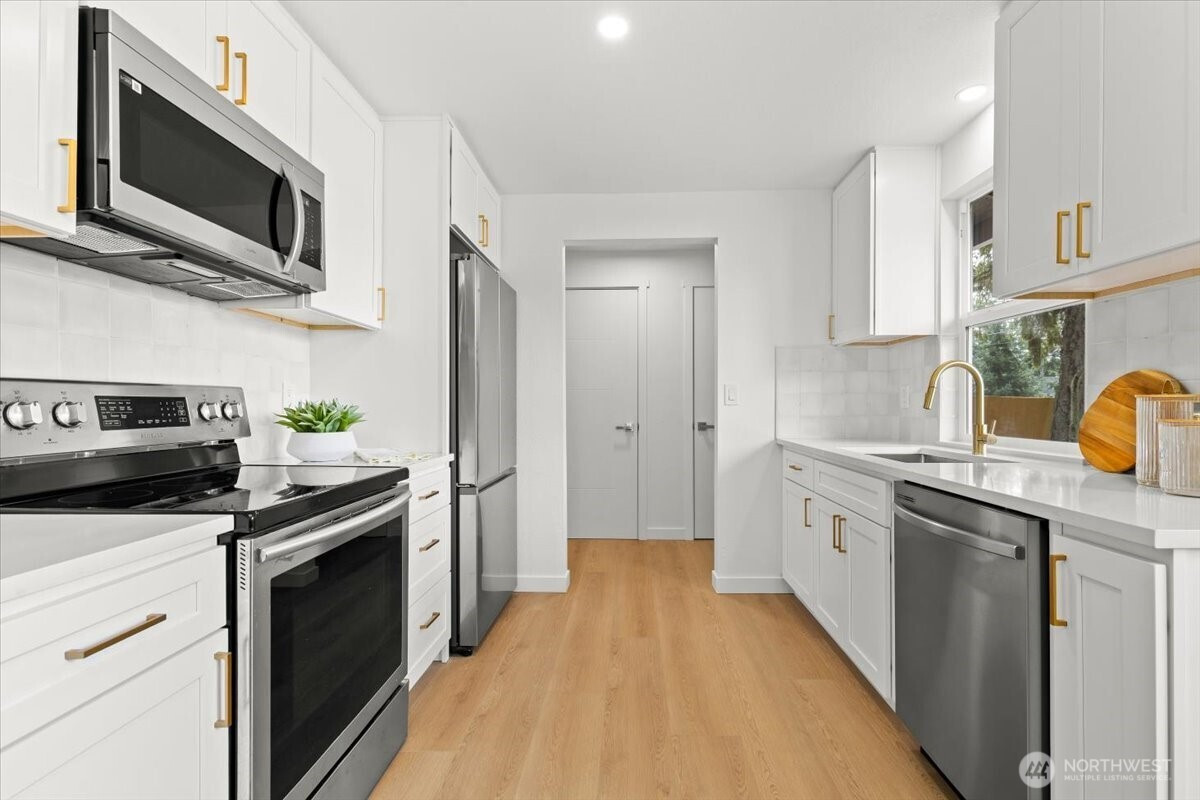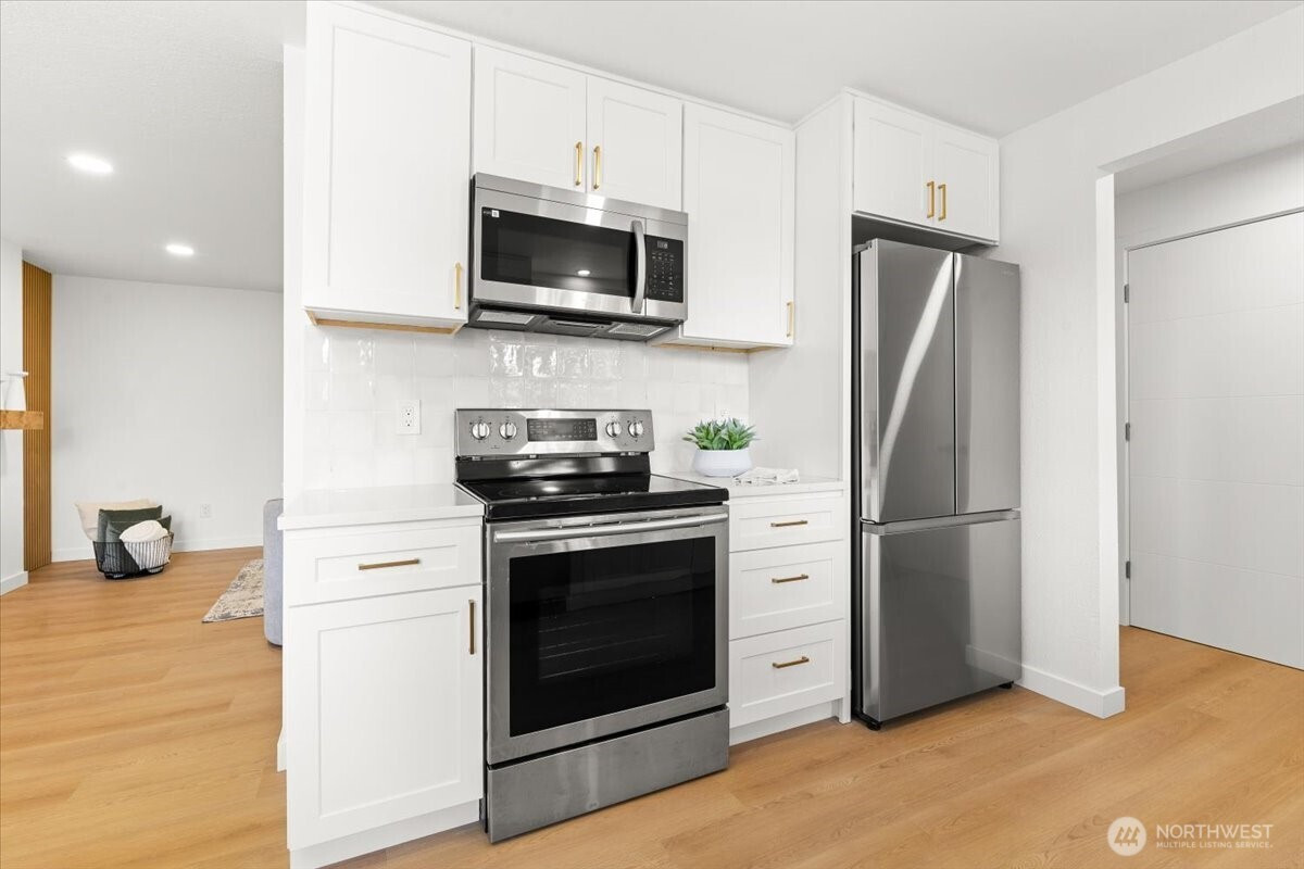 (650)533-3259Gorgeous, fully renovated 3 bedrooms, 1 bath rambler is completely turn-key and ready for its new owners. Featuring all-new flooring, interior and exterior fresh paint, new windows. Updated kitchen with quartz countertops, backsplash and sparkling stainless steel appliances, perfect for your culinary adventures. The bright living room offers an electric fireplace with an accent wall, adding warmth and style. Step outside to unwind on a spacious patio with nature sceneries. Home sits on almost half an acre lot with long driveway for lots of parking and a one car garage. Just minutes from freeway, Costco and other amenities, and only around 20 minutes to JBLM. Come see it today!