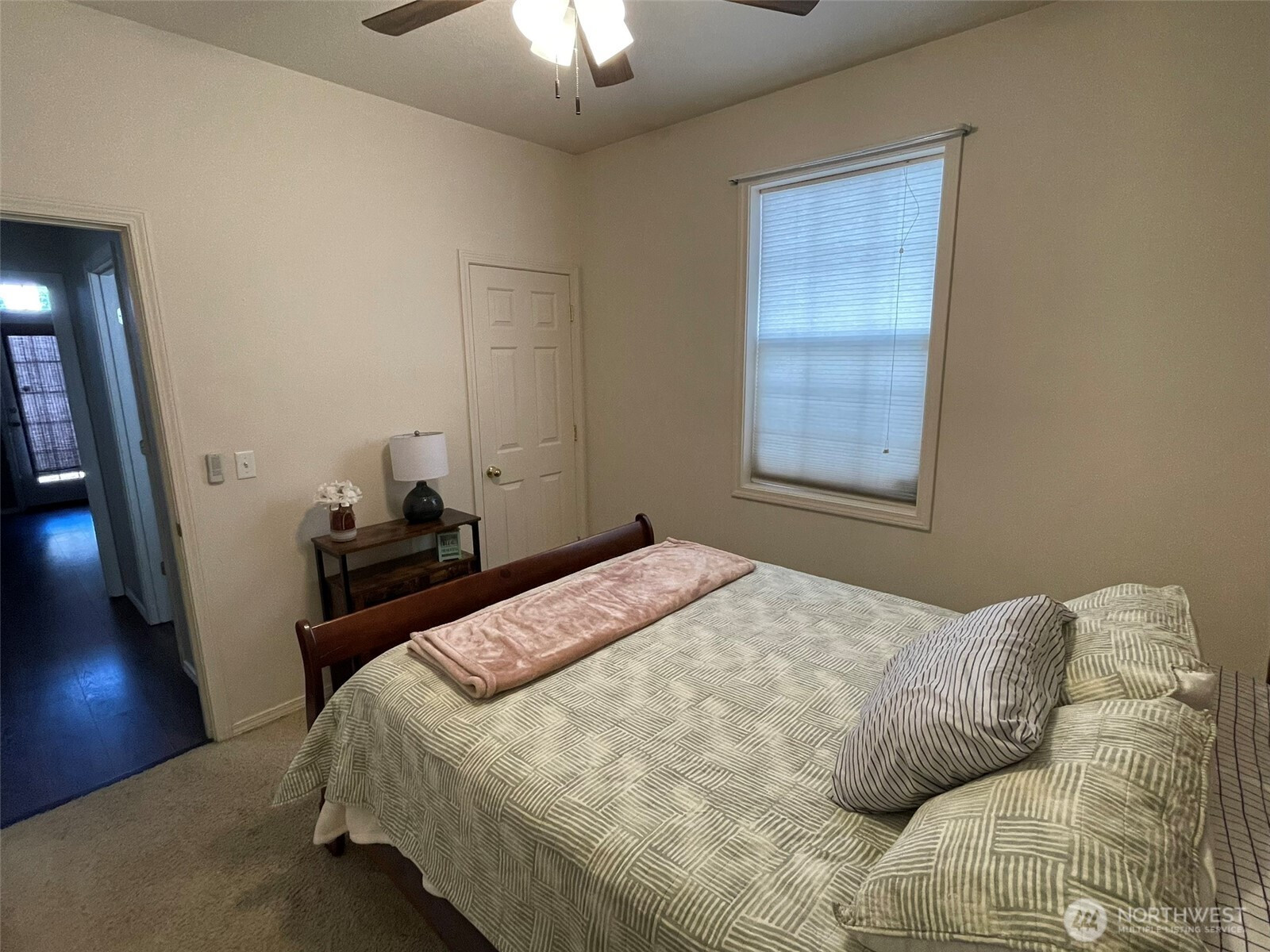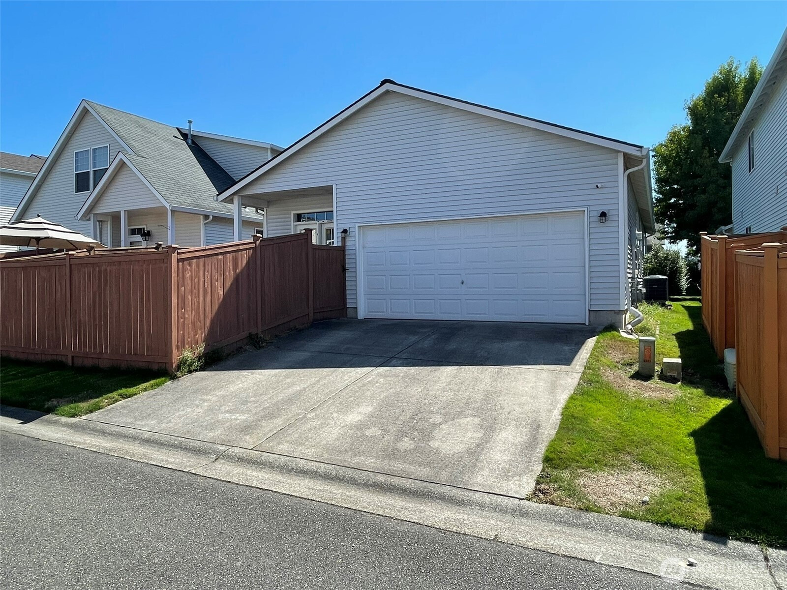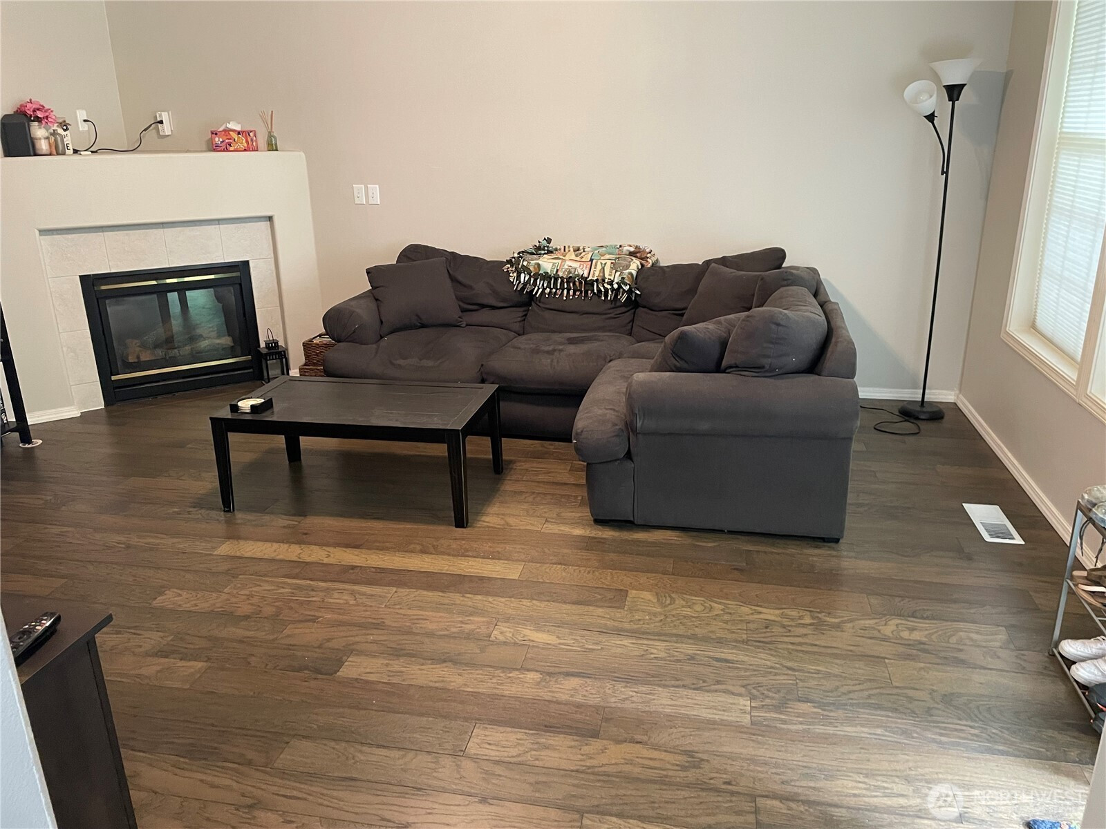 (650)533-3259This rambler is move-in ready. Brand new wood floor. The covered front porch leads to living room with high ceiling and gas fireplace. The large kitchen has a breakfast bar island with lots of counter space, brand new dishwasher, and French doors to front porch. Home features laminate flooring throughout, wall to wall carpet, updated bathrooms, a 50 year roof (around 5 years old), and a heat pump for those hot summer days and to keep you comfortable year round. Spacious 2 car attached garage with alley access. HOA maintains front yard and common areas. This home is close to I-5, JBLM, shopping, schools, Lacey RAC, and entertainment. Assumable VA loan. Security system stays with home.