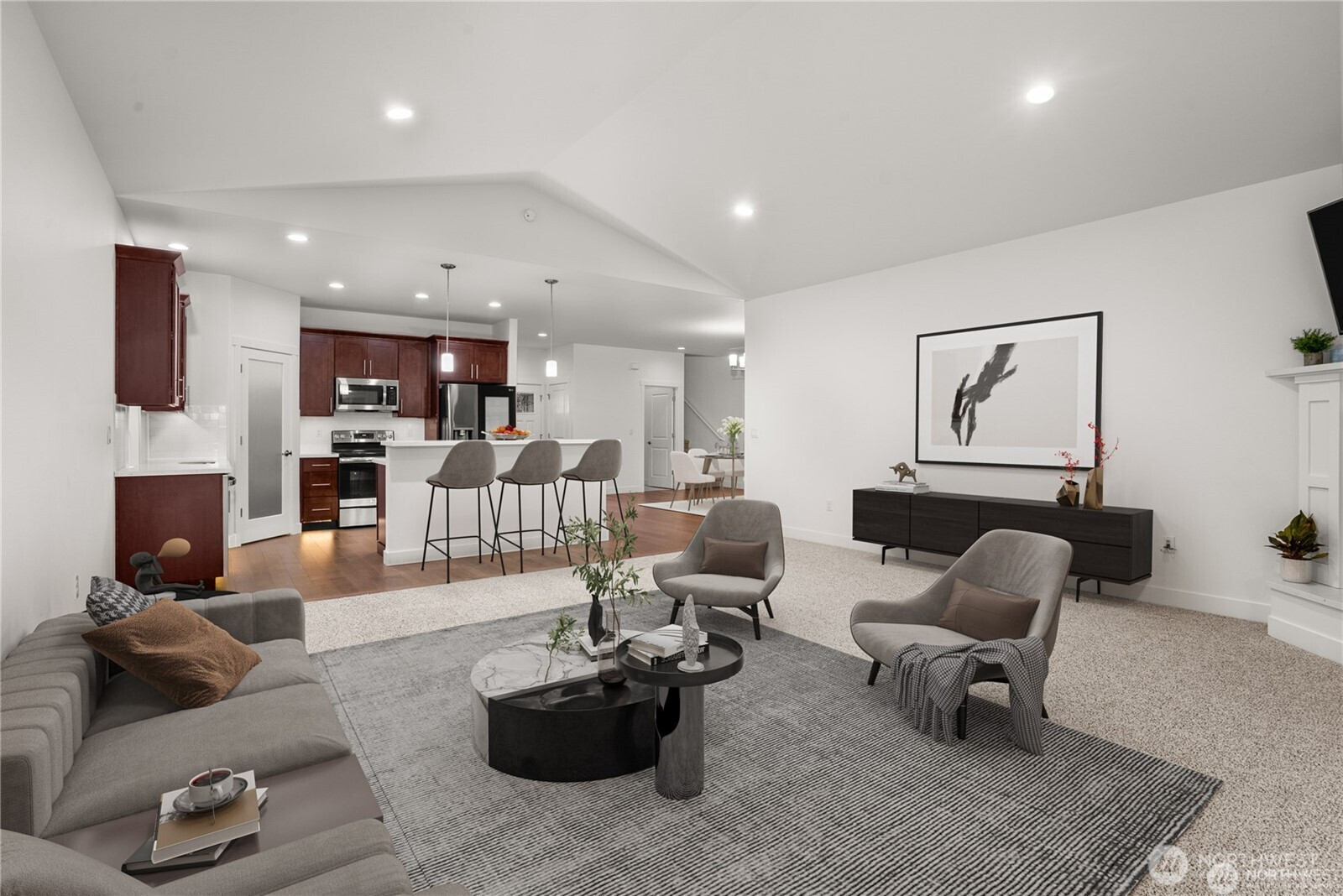 (650)533-3259Welcome to this beautifully maintained 2020-built home in Olympia. Offering 2,584 square feet, 3 bedroom and 3 bath of thoughtfully designed space. Tranquil greenbelt with preserved wetlands—providing a sense of privacy in back. The neighboring back property is being transformed into a nature preserve to maintain wildlife and fauna.Step inside to soaring ceilings, warm modern lighting, and an open-concept layout centered around a stunning kitchen—truly the heart of the home. The oversized island with sink and bar seating invites connection, whether you're hosting, cooking, or simply gathering. Quartz countertops, soft-close cabinetry, and under-cabinet lighting elevate both function and style.The living area features a gas fireplace (60gal propane tank) creating a cozy focal point that perfectly complements the home's clean, contemporary lines.Lg. bonus rm with 3/4 bath & small closet, adds flexibility to a possible 2nd Primary Bedroom or studio and has a peakaboo view of Mt. RainierDesigned for everyday ease. Outside, enjoy a covered deck, fully fenced and landscaped yard, and a complete perimeter sidewalk. There’s also room to create RV parking, adding even more versatility.Additional features include:• Generator outlet for peace of mind• Cat 5 wiring and CenturyLink fiber readiness• High-efficiency heat pump with A/C• Smart home upgrades throughoutThis home is truly turn-key offering comfort, technology, and a connection to nature that’s hard to find.