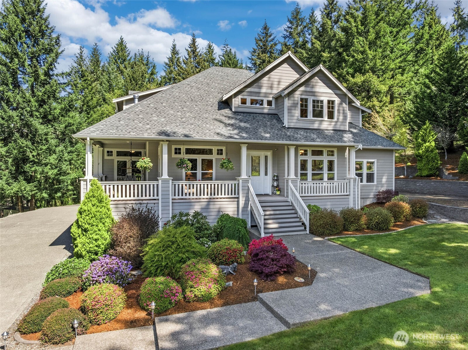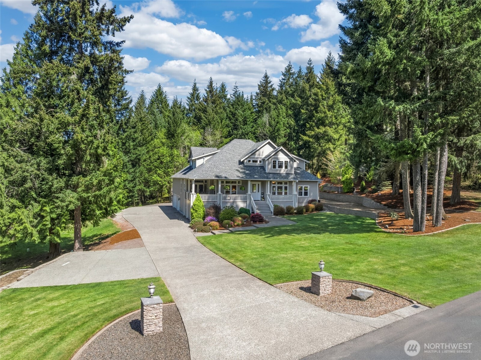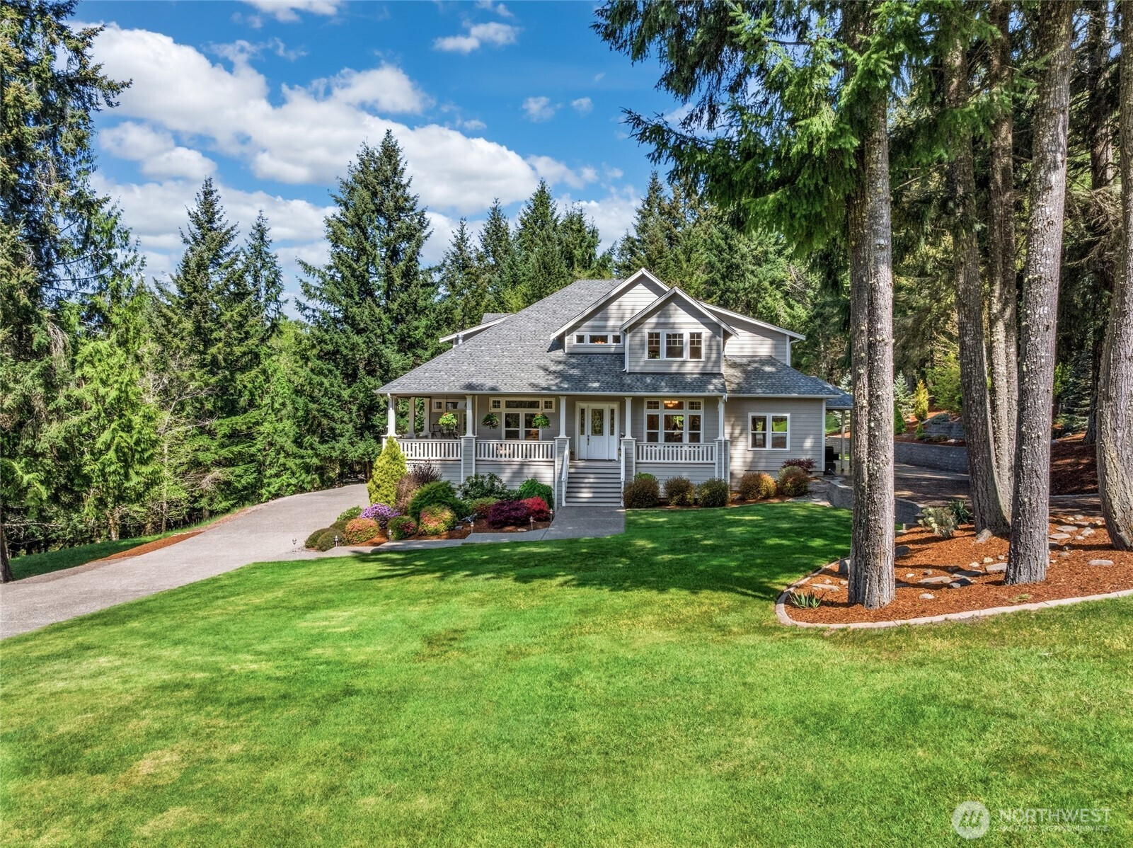 (650)533-3259Don’t miss this meticulously maintained 4-bedroom, 3.25-bath home set on 5 beautiful acres. This inviting property welcomes you with a wraparound covered porch—perfect for relaxing and enjoying the peaceful surroundings. Inside, you’ll find a formal living room with a cozy propane fireplace, an elegant dining room with charming coved archways, and a private den/office. The spacious eat-in kitchen features a butler’s pantry and flows seamlessly into the vaulted family room with a propane fireplace, creating the perfect gathering space. The main level also includes a convenient half bath, a laundry room with utility sink and extra storage, and a comfortable primary suite with a ¾ bath and walk-in closet. Upstairs, a versatile loft/rec room provides additional living space, along with two bedrooms connected by a Jack-and-Jill bath. You’ll also find a second luxurious primary suite featuring a double-sided propane fireplace, an expansive walk-in closet, and a spa-like five-piece bath. The electric furnace and heat pump ensure you are comfortable year-round. The beautifully landscaped grounds are truly a standout, offering a mini orchard, vegetable garden, a goat shed, tiered garden beds, multiple storage sheds, and a patio ideal for entertaining, along with a cozy fire pit area. Completing the property is an attached 3-car garage with extra storage, a detached 2-car garage, and abundant additional parking for all your needs. Close to schools, shopping, entertainment, I5 and JBLM.