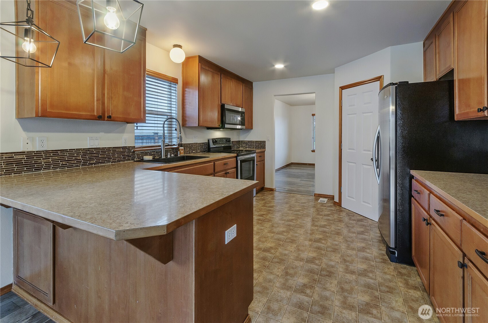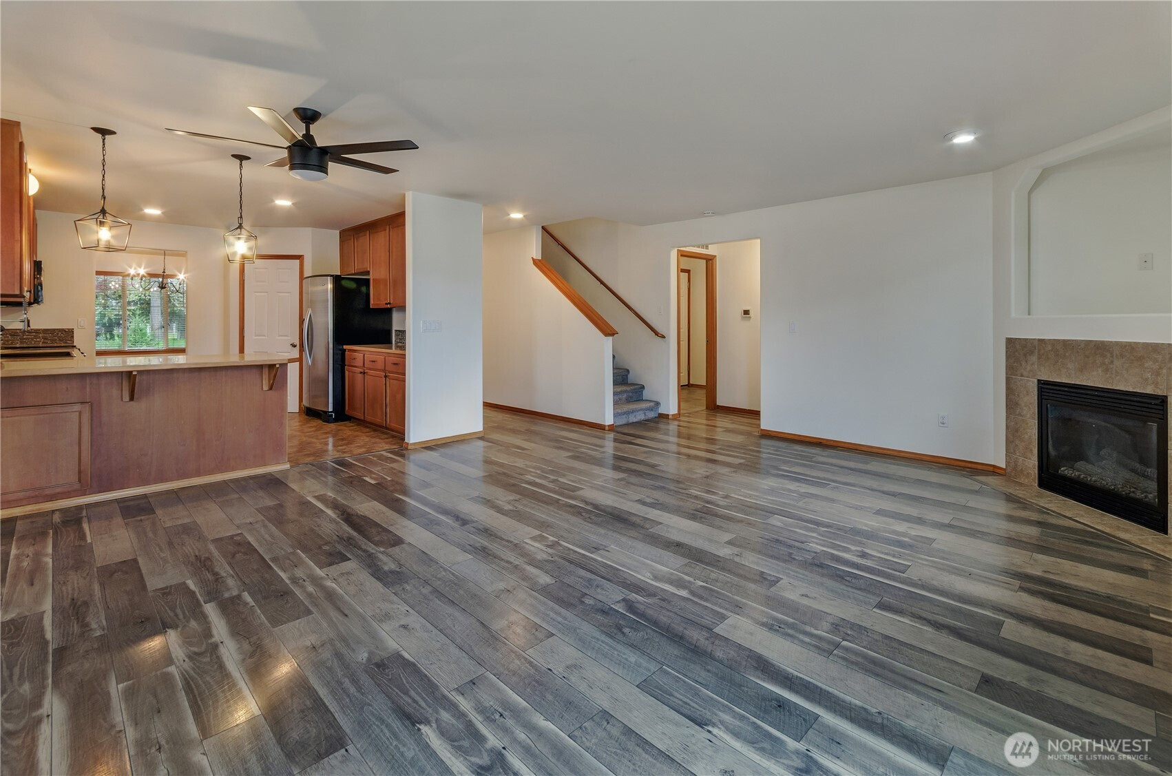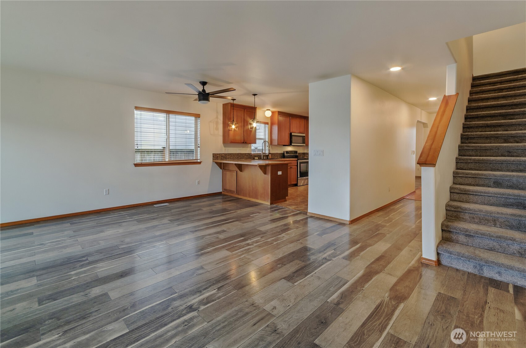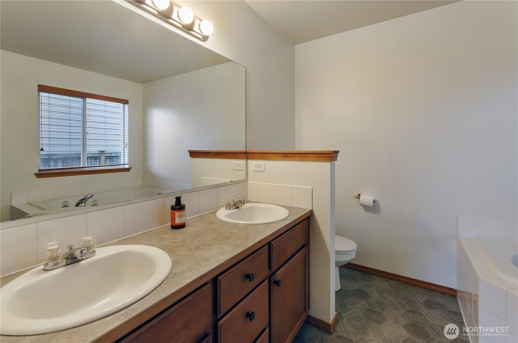 (650)533-3259Welcome to this beautifully maintained home in the desirable Mountain Shadow community, offering more than 2600 sqft of space, comfort & thoughtful updates throughout. Designed w/ versatility in mind, this 5-bedroom home plus dedicated office provides room for everyone. Main floor features a spacious primary suite complete w/ a luxurious 5-piece en suite, including a soaking tub, double vanity, & walk-in closet. A formal dining room greets you at the entry. The inviting living room w/ gas fireplace flows seamlessly into the expansive kitchen; equipped w/ stainless steel appliances, abundant cabinetry, pantry, & generous breakfast bar perfect for gathering. Upstairs, you’ll find 4 additional bedrooms w/ walk-in closets and charming corner windows, a full bath, and a dedicated office space ideal for remote work or study. At the top of the stair landing, enjoy a delightful peek-a-boo view of Mt. Rainier from the bonus area. Recent updates include newer carpet, modern light fixtures, a remodeled main-floor half bath, plus a newer furnace & water heater. Comfort is ensured year-round w/ central A/C. Additional highlights include a conveniently located laundry room near the primary suite, wood slat blinds throughout, & 2-car attached garage. Step outside to a fully fenced, low-maintenance backyard; perfect for relaxing or entertaining. Professionally cleaned & truly move-in ready, this home is an exceptional opportunity you won’t want to miss.