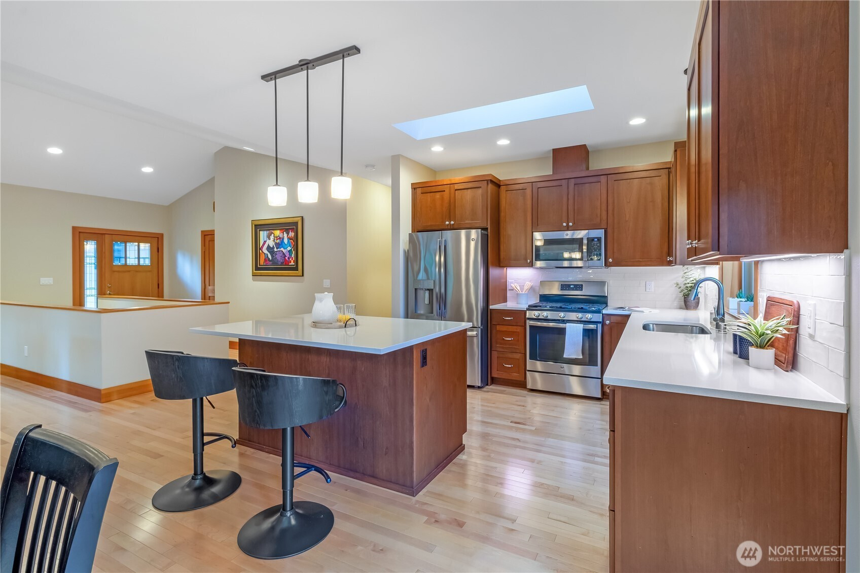 (650)533-3259Beautiful, spacious 3 bedroom, 2.75 bath home near Sudden Valley Gate 5 with a high-end feel and thoughtful design throughout. The main level offers vaulted ceilings, hardwood floors, skylights, and a wide open floor plan that makes the space feel both comfortable and expansive. The kitchen features quartz counters, a walk-in pantry, and flows easily into the dining and living areas. Main floor living includes the primary suite and an additional bedroom, two full bathrooms and a laundry room, making day-to-day living easy and flexible. The primary suite is generous in size with a large walk-in closet with built-ins, an additional closet, and an ensuite bath with double vanities and radiant floor heating. Downstairs includes a rec room, third bedroom, and bathroom with walk-in shower, ideal for guests or separate living space. Features include air conditioning, tankless water heater, electric vehicle charging, custom window treatments, and abundant storage throughout. Enjoy the composite deck off the dining area overlooking a peaceful, wooded setting, plus a lower enclosed deck. Large, walkable crawl space with concrete flooring adds even more usable storage. Level access, low maintenance landscaping, and convenient access to public transportation. Sudden Valley amenities include golf, marina access, parks, trails, beaches, and community pools, complementing the home’s overall quality and livability.