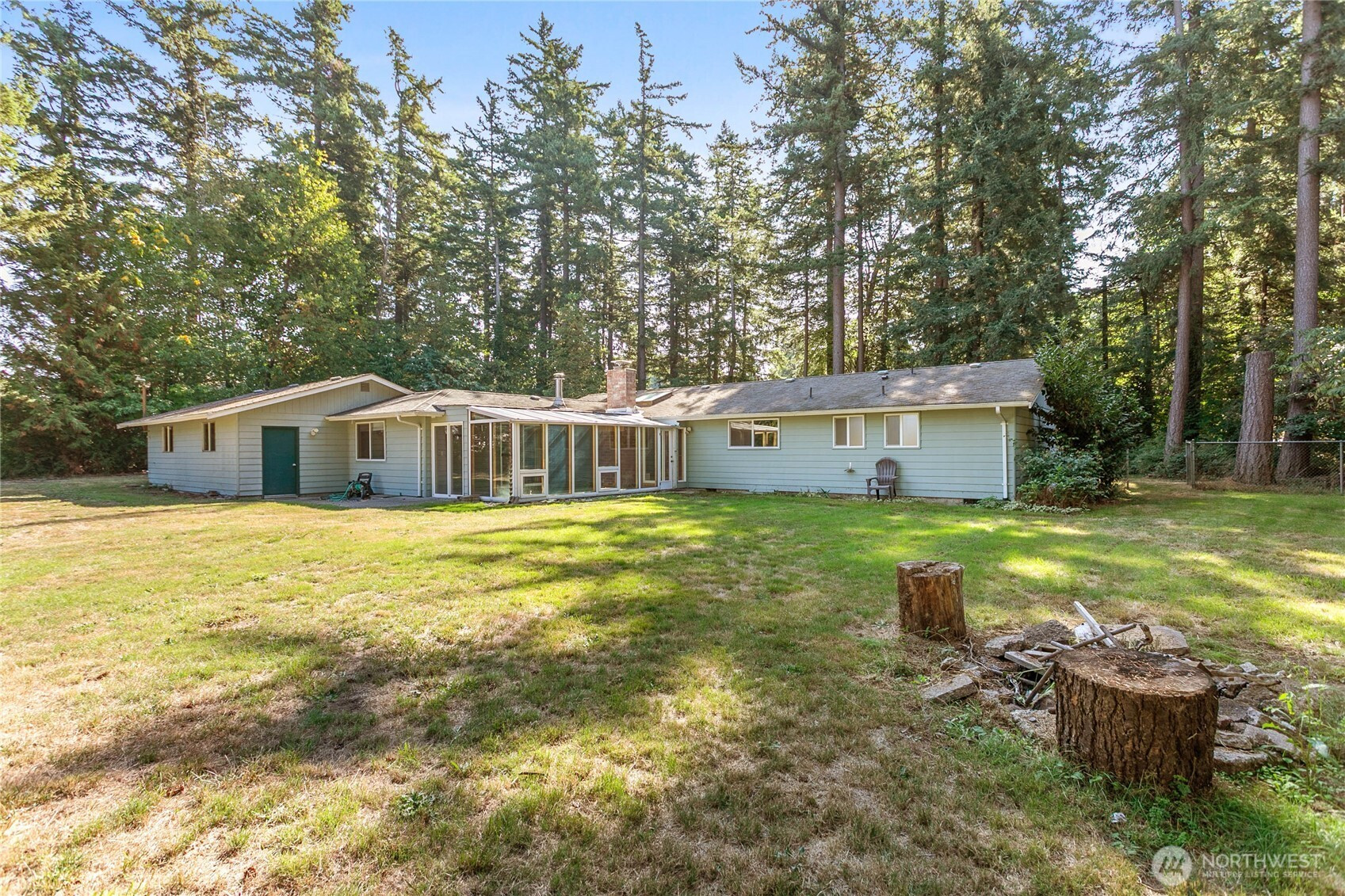 (650)533-3259Hard to find private and quiet, 3 bed, single story home on 3/4 of an acre, most of which is fenced. Perfectly located between Bham and Ferndale, Deer Creek Lane is paved, no association or dues. Brand new carpet in much of the home, hardwood in the kitchen, dining and living room with a wood burning fireplace. A large sunroom has access from the LR and the family room and looks out over the extensive, fenced back yard that has had a huge garden and there's a kennel as well. This lot is sunny and flat with well drained soils, many beautiful trees including some fruit trees. There's an oversized 2 car garage and lots of graveled extra parking for boats, etc. It has a high efficiency natural gas furnace, newer W/D, and much more!