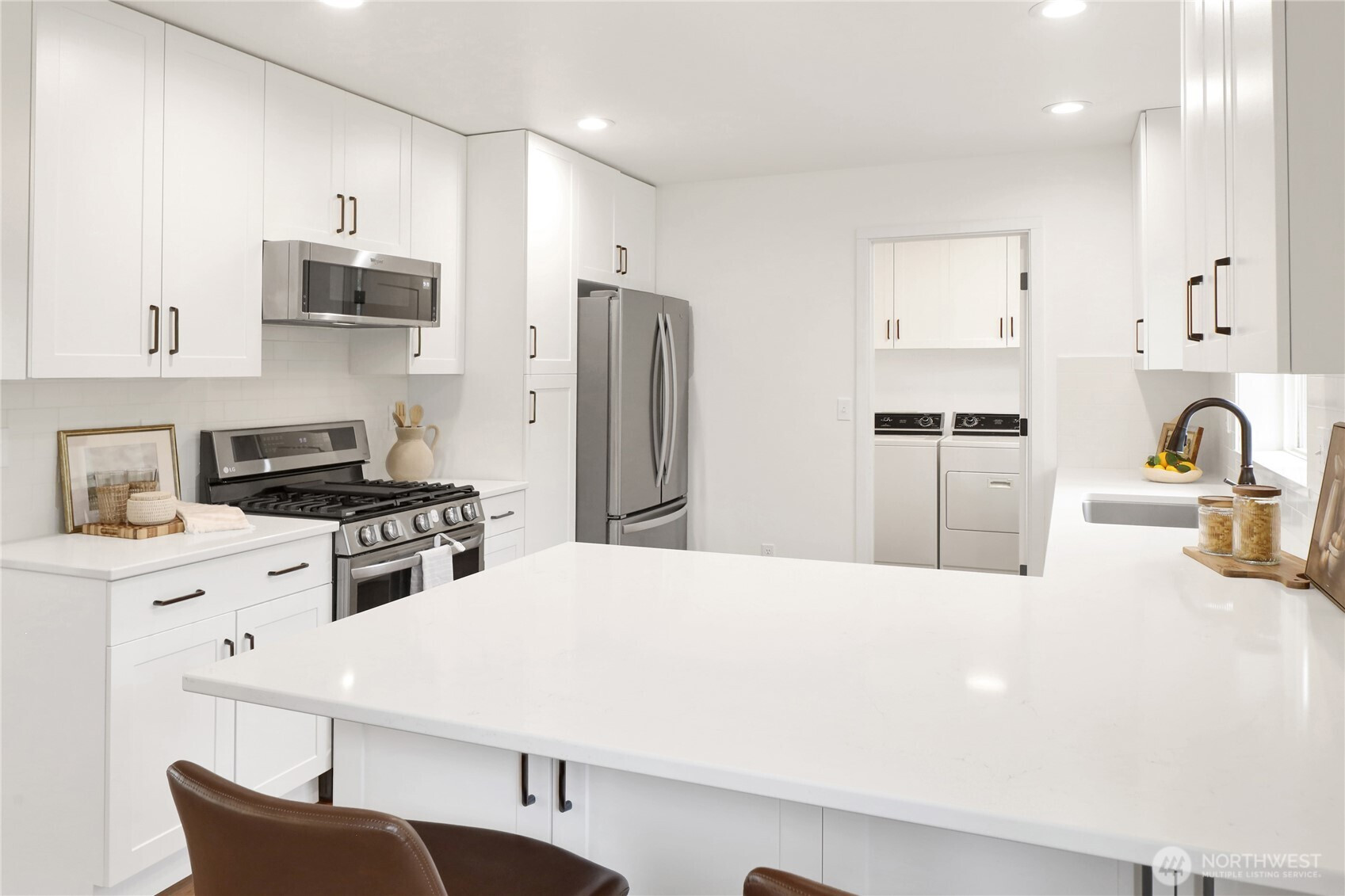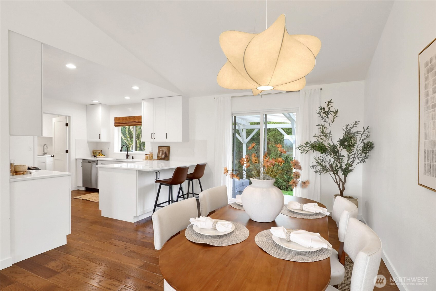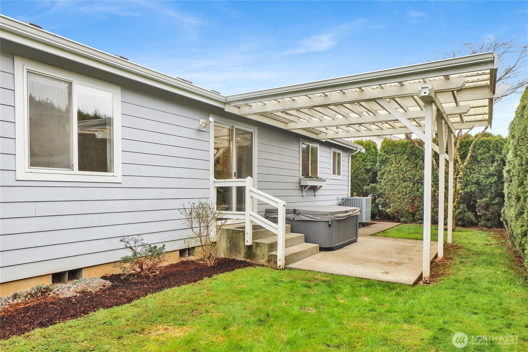 (650)533-3259Turn-key one-level living in a fantastic Lynden location! Vaulted ceilings and gorgeous engineered hardwood floors create a bright, open feel, while the fully remodeled 2022 kitchen steals the show with quartz counters, custom drawer cabinets, new appliances, convection oven with air fryer, and sleek thin-profile microwave. The primary bedroom features its own attached bathroom and a large walk-in closet. Laundry room upgrade with cabinets and sink adds extra convenience. Major updates already done—including a brand new roof, EV charger, new carpet throughout, and an efficient heat pump for low bills and comfortable central A/C. Step outside to enjoy the covered pergola patio area and just enough yard space for the green-thumb enthusiast, complete with a greenhouse! All just a stone’s throw from Bender Fields recreational park, Bender Plaza (restaurants, Woods coffee, Froyo, etc.) and Lynden’s scenic trail system connecting parks and town. The community features a designated RV parking spot for a minimal fee. Perfect for first-time buyers, retirees, or investors looking for a move-in ready home!