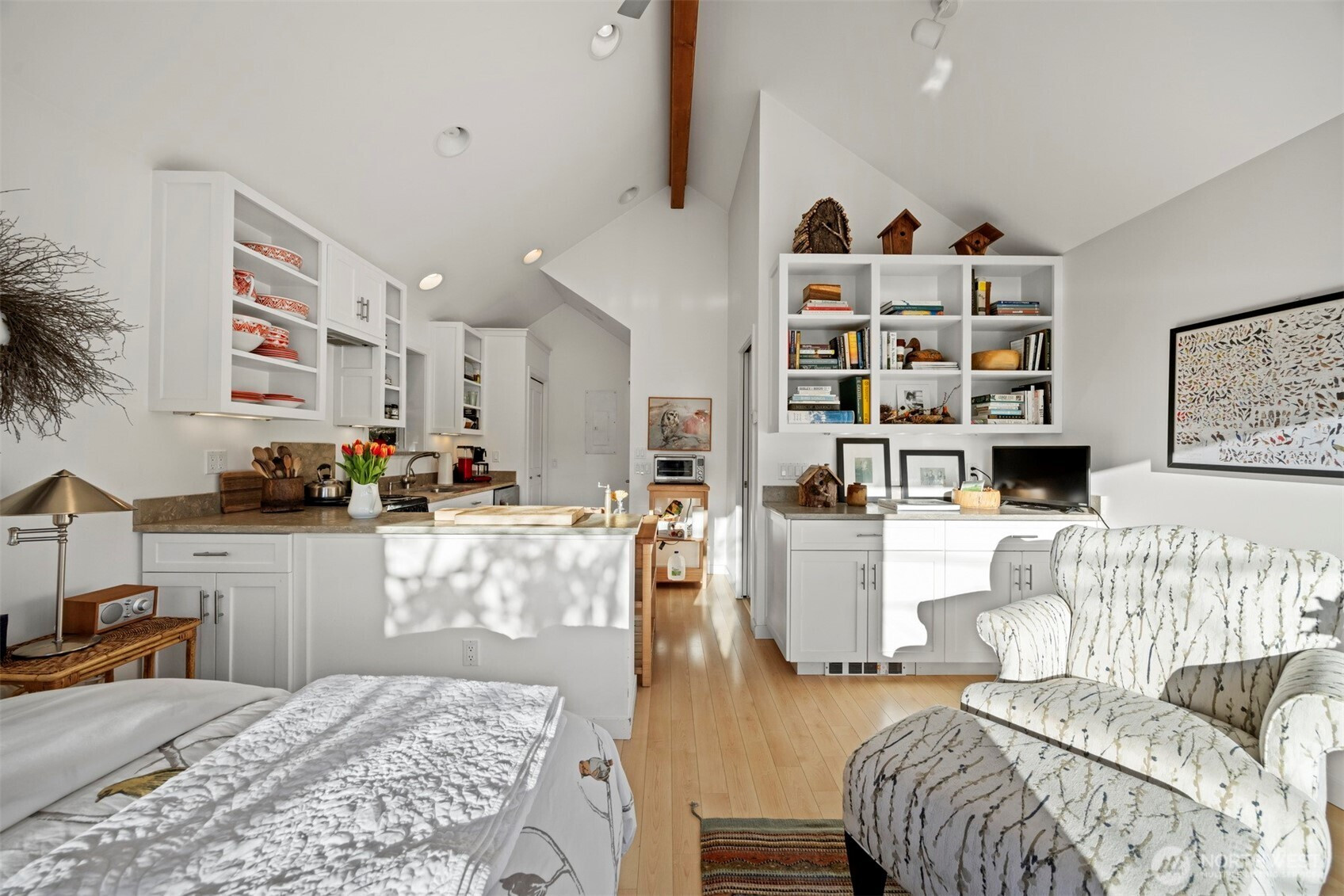 (650)533-3259Welcome to your dream retreat in Dellesta Park, where tranquility meets convenience on the sparkling shores of Lake Whatcom! Nestled among towering evergreens, this immaculate studio "cottage in the woods" radiates warmth and charm, offering a peaceful sanctuary just steps from nature's wonders. Wake up each morning to sweeping lake vistas and golden sunrises from your private deck, then enjoy exclusive access to scenic walking trails, a resident-only boat launch, and a pristine community beach—perfect for boating, swimming, and lakeside picnics without the crowds. Inside, soaring vaulted ceilings and sunlit laminate floors create an airy, open feel, while crisp white shaker cabinetry and a modern tiled bathroom add a touch of elegance. The inviting living area features custom built-ins for organization, and the oversized garage—with dual electrical panels and EV-ready circuits—is perfect for all your storage and adventure needs. Gently enjoyed by friends and VRBO guests, this enchanting home offers additional off-street parking and ample space for your personal touches. If you wish to tailor the property further or thoughtfully clear trees, the seller will gladly collaborate to preserve the neighborhood’s natural beauty. Seize this rare opportunity to own a lakeside haven where every day feels like a getaway!