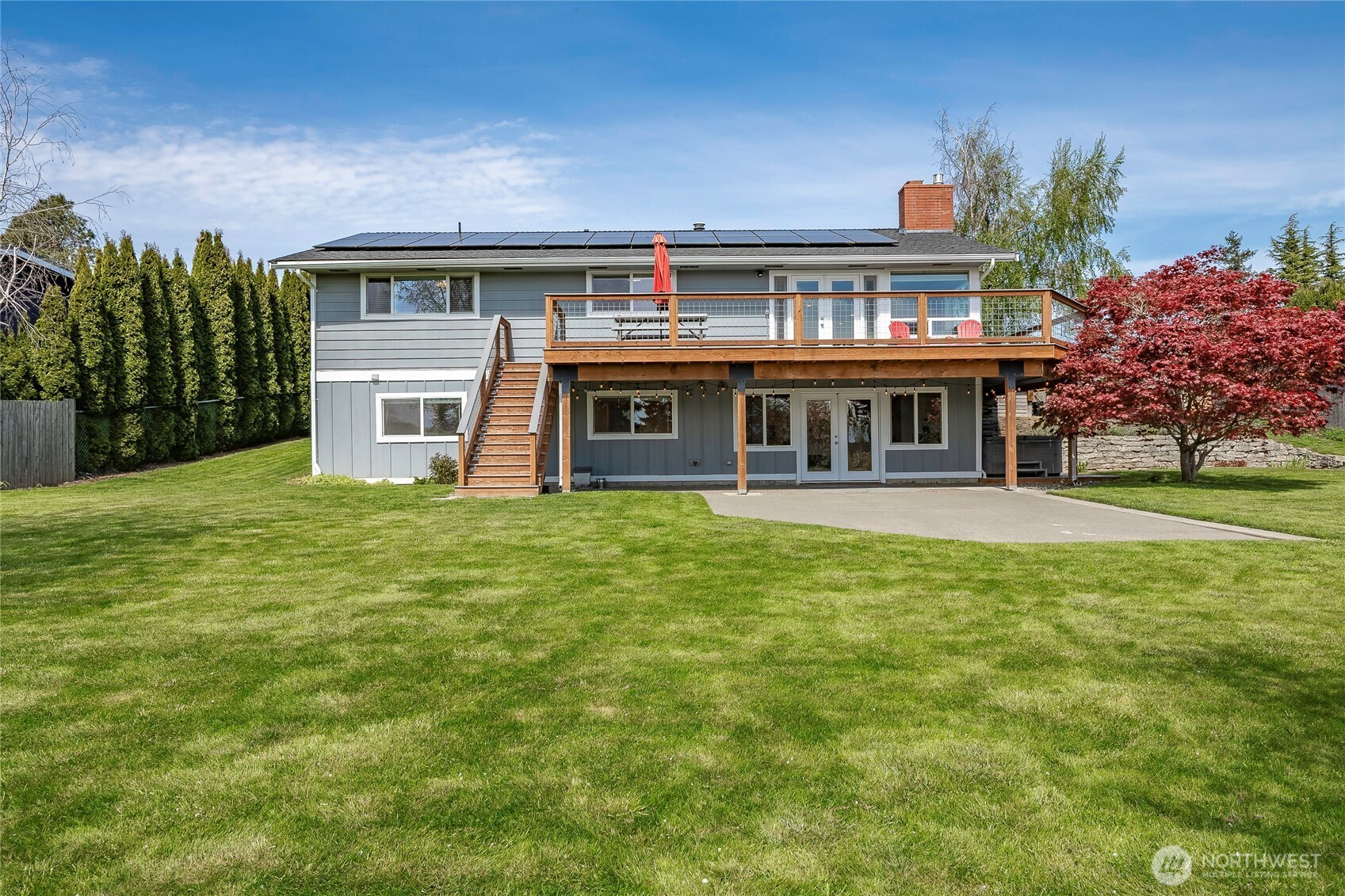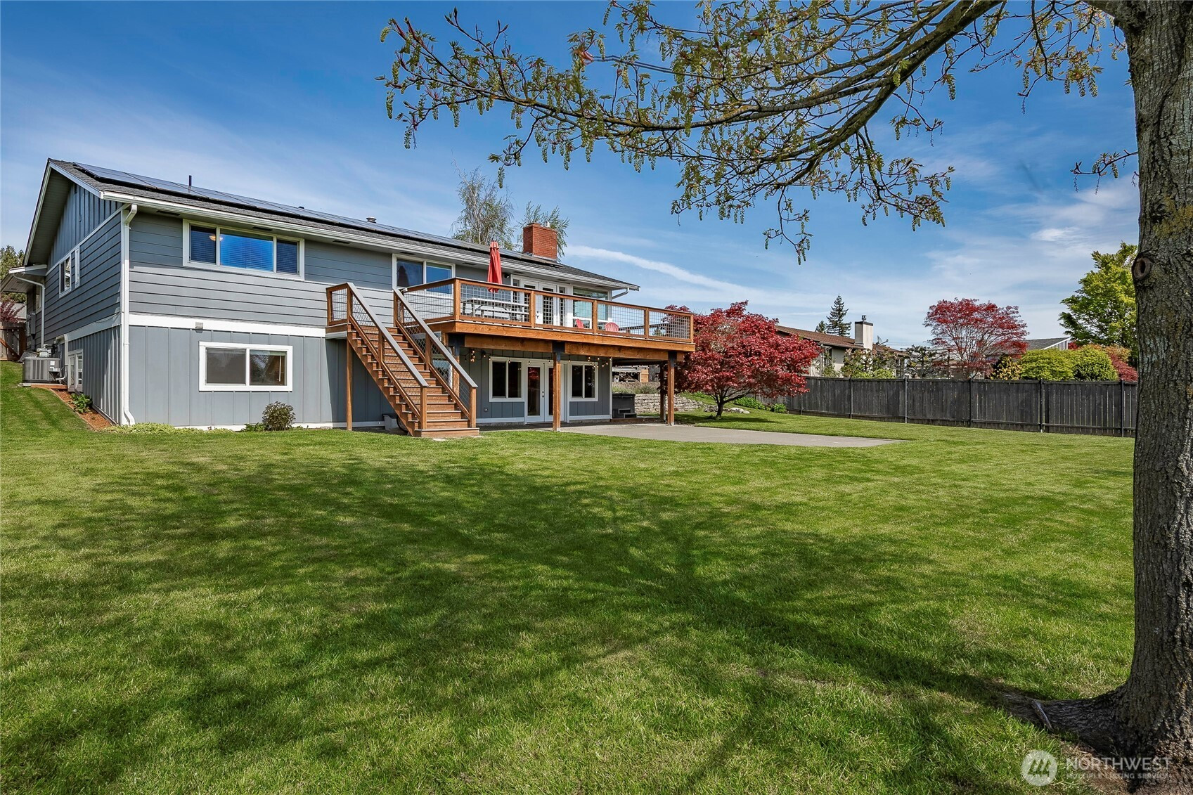 (650)533-3259Experience space, privacy, and scenic beauty in this beautifully updated Ferndale home, ideally situated on a quiet cul-de-sac. Offering 3,168sqft with 5 bedrooms, a bonus room and 3.75 baths, this home provides flexibility for modern living. Casual, comfortable and sun-filled, all living is on the main floor with lots of windows and natural light. Recently renovated, the heart of the home kitchen is functional, and welcoming as it flows into the great room, which opens up with french doors to the wraparound deck with partial views of Mount Baker. The fully finished daylight basement is perfect for guests, work-from-home setups or multi-generational living. Set on an expansive 17,860 sqft fully fenced, sun drenched lot, the property features a large, level yard with mature fruit trees, a dedicated garden space with raised beds, a storage shed and a hot tub - ample space for croquet, bocce ball or just good old-fashioned backyard fun. Major upgrades include a new roof, paid-off solar system for energy efficiency and savings, new furnace, updated insulation, and a new garage door system. The two-car garage and a 30V RV electrical hookup add convenience and functionality. This home is move-in ready with a great use of space, stunning views and modern upgrades in a sought-after Ferndale location.