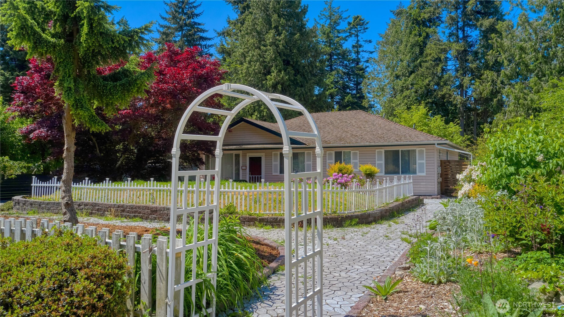 (650)533-3259A rare opportunity for 1 level living in sunny Point Roberts! Cozy 3 bedroom, 2 bath home filled with natural light from large windows & skylights plus vaulted ceilings! Large 63x135 ft sunny lot on a quiet street with over 1000 sq ft of patio space. Front yard is beautifully landscaped with shrubs, flowers, & a winding pathway plus extensive paving stones with the rear yard ready for a new lawn and/or garden space. Bonus separate building is perfect for an office, craft room or artists studio and has a skylight & is fully wired Worry free living with a brand new roof, gutters, & a recently finished fully fenced rear yard, + lots of parking space. Extensive use of tile throughout. Great floor plan including a huge kitchen/dining area.
