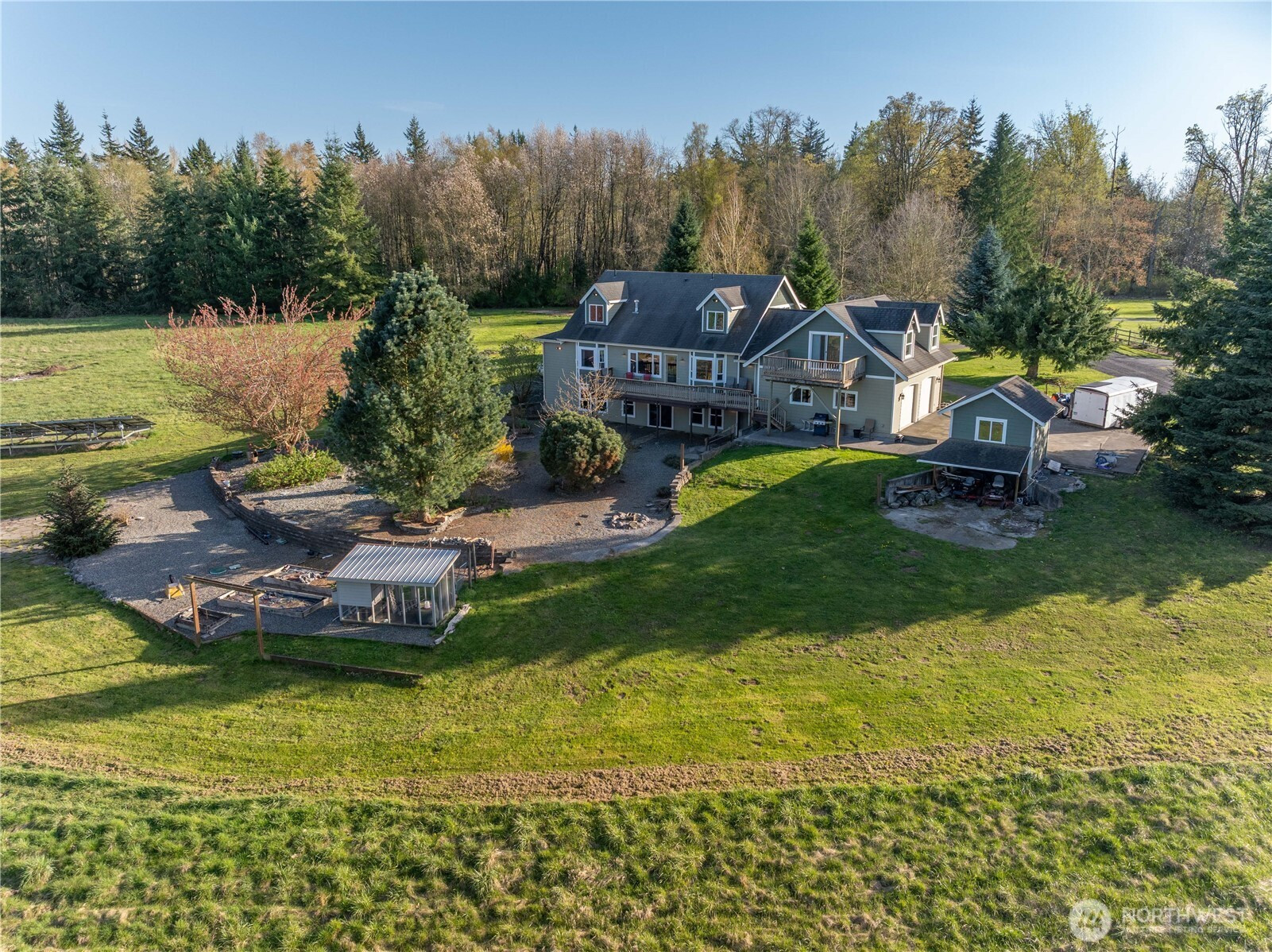 (650)533-3259Uncover the possibilities of this one-of-a-kind Ferndale home set on 9.83 private acres! This large 3,112 sf finished 4 bedroom, 4 bath home with 2 office spaces offers space, flexibility, and exceptional income/multigenerational living potential… In addition to the main residence, the property has 3 income producing or multigenerational options: 1) and existing permitted DADU (Detached Accessory Dwelling Unit), 2) a bonus room with a 3/4 bath that could easily be converted to an ADU (Accessory Dwelling Unit) and 3) a 1,627 sf unfinished daylight basement that is rough plumbed for a bathroom. Whether you’re looking to generate income, accommodate multiple generations, or create a custom estate, this property offers a rare combination of square footage, land and versatility. Don’t forget the Mountain Views, 36 solar panels, concrete slab RV pad, Gazebo, parking galore, outdoor fireplace + fire pit, detached shop and chicken coop. Plenty of room for livestock, gardens, etc on the gently sloped pasture. Minutes from I-5 and Birch Bay on a quiet/well maintained dead end road with only a few peaceful neighbors. Bring your vision and unlock the full potential of this unique property
