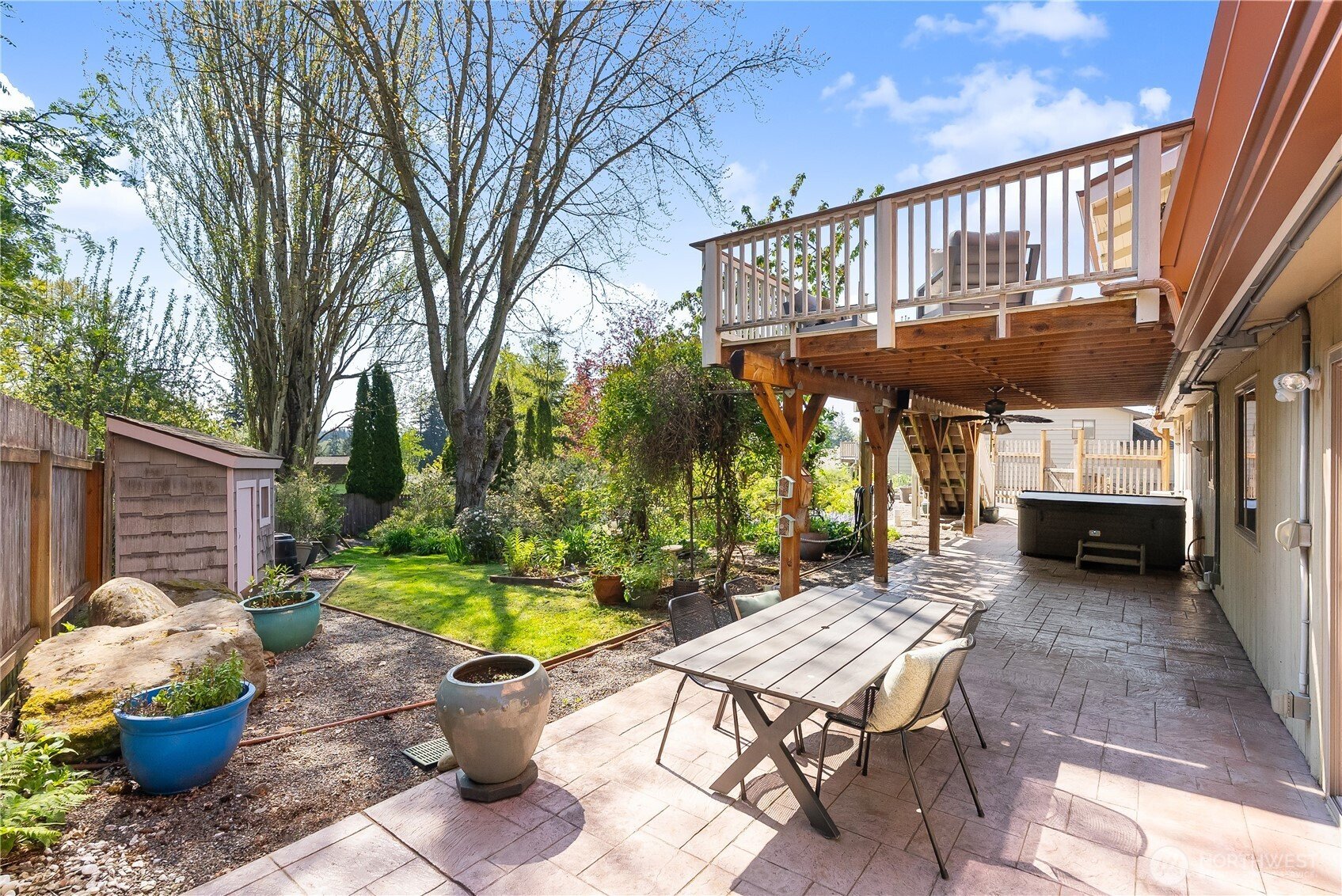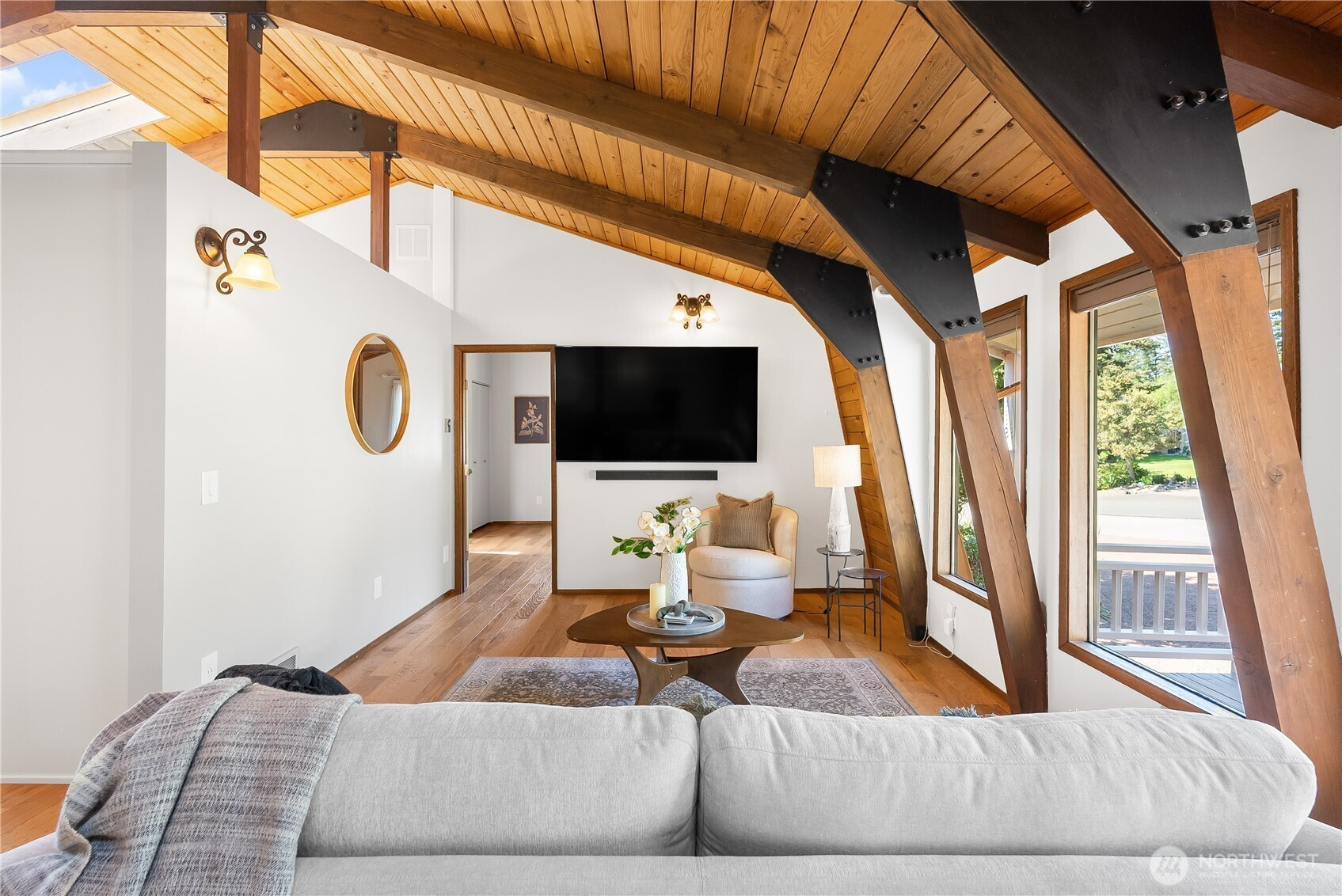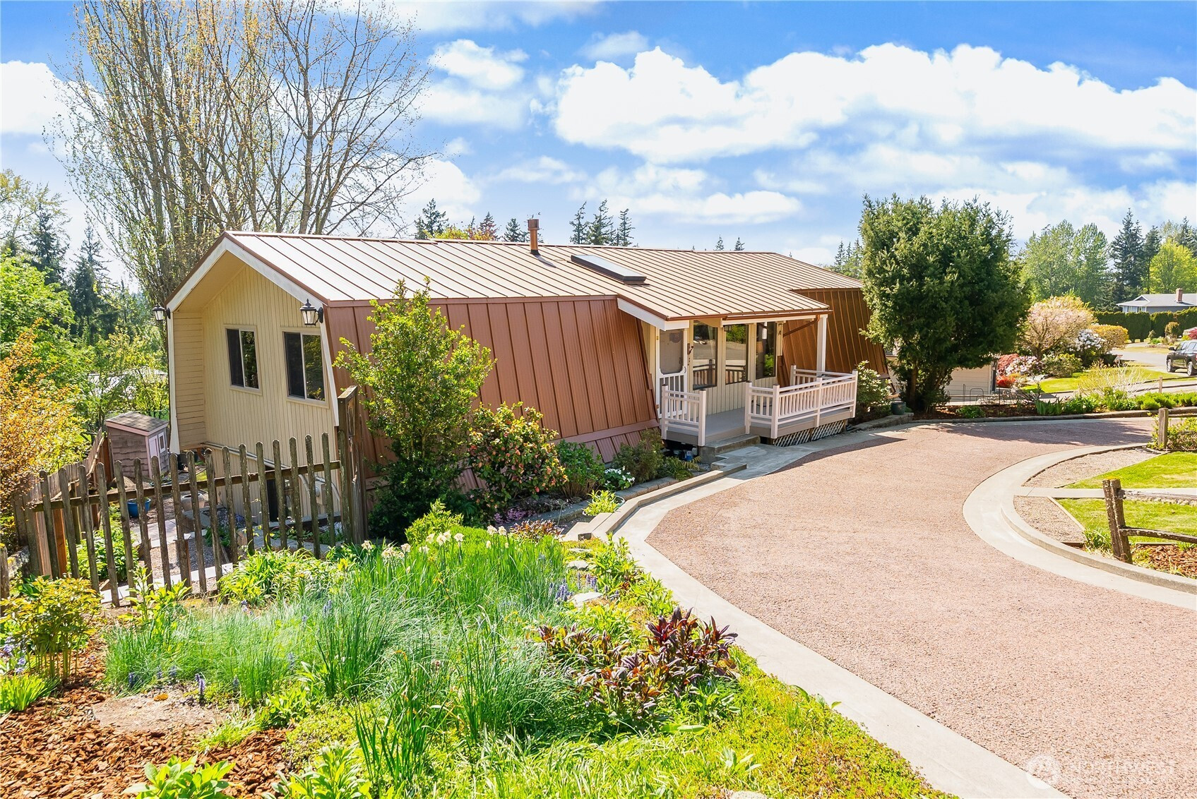 (650)533-3259A home you really need to experience from the inside out. From the street, it has a bold, barn inspired design with a wraparound metal roof that gives it a look you won’t see every day. Step inside and it tells a completely different story. Vaulted wood ceilings and skylights bring in an incredible amount of natural light, giving the main living space a warm, chalet feel. Brick flooring carries through the entry and transitions into engineered hardwood. The kitchen has been fully updated with custom maple cabinetry that makes great use of the space, along with an induction range and some thoughtful built ins. Bathrooms have all been remodeled, including marble showers that are clean, simple, and easy to maintain. The home has been thoughtfully cared for over time with updates that matter. Insulated 50 year metal roof, heat pump and mini split, updated electrical panel with generator hookup, new water heater, and a beautiful gas fireplace. The deck was built with longevity in mind as well, using aluminum and a sealed design that protects the covered patio and hot tub area below. Set on nearly a third of an acre, the backyard has a park like feel with garden space, multiple sheds, and a 1,000 gallon water catchment system to help support it all. Plenty of parking out front with room for guests, RVs, or whatever else you might need. It’s unique, well maintained, and one of those homes that just clicks the moment you walk through the door. Come take a look.