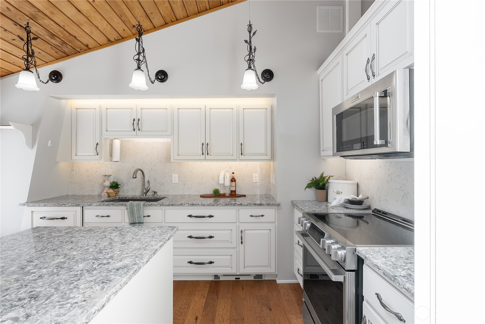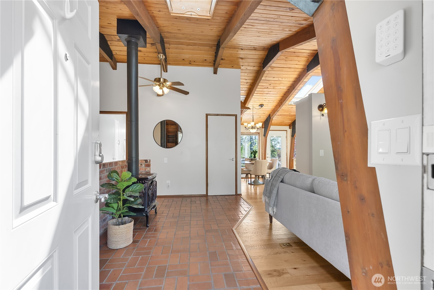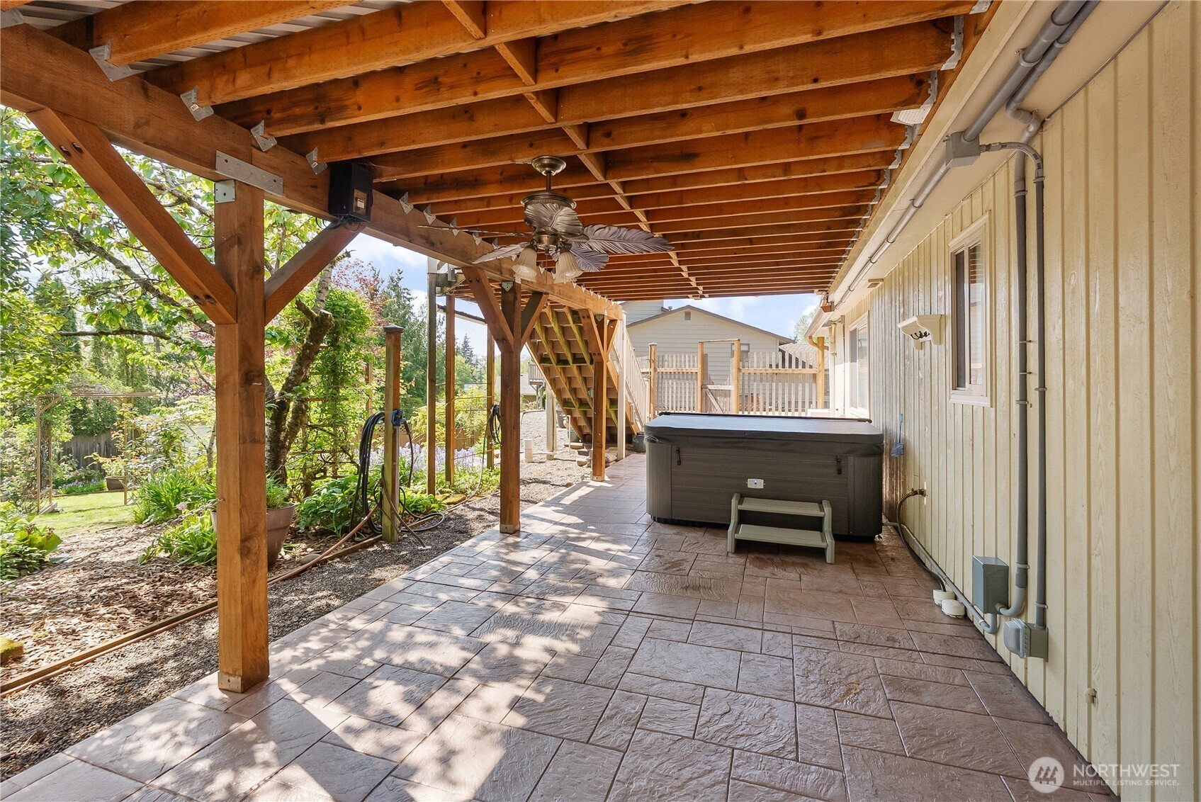 (650)533-3259A home you really need to experience from the inside out. From the street, it has a bold, barn inspired design with a wraparound metal roof that gives it a look you won’t see every day. Step inside and it tells a completely different story. Vaulted wood ceilings and skylights bring in an incredible amount of natural light, giving the main living space a warm, chalet feel. Brick flooring carries through the entry and transitions into engineered hardwood. The kitchen has been fully updated with custom maple cabinetry that makes great use of the space, along with an induction range and some thoughtful built ins. Bathrooms have all been remodeled, including marble showers that are clean, simple, and easy to maintain. The home has been thoughtfully cared for over time with updates that matter. Insulated 50 year metal roof, heat pump and mini split, updated electrical panel with generator hookup, new water heater, and a beautiful gas fireplace. The deck was built with longevity in mind as well, using aluminum and a sealed design that protects the covered patio and hot tub area below. Set on nearly a third of an acre, the backyard has a park like feel with garden space, multiple sheds, and a 1,000 gallon water catchment system to help support it all. Plenty of parking out front with room for guests, RVs, or whatever else you might need. It’s unique, well maintained, and one of those homes that just clicks the moment you walk through the door. Come take a look.