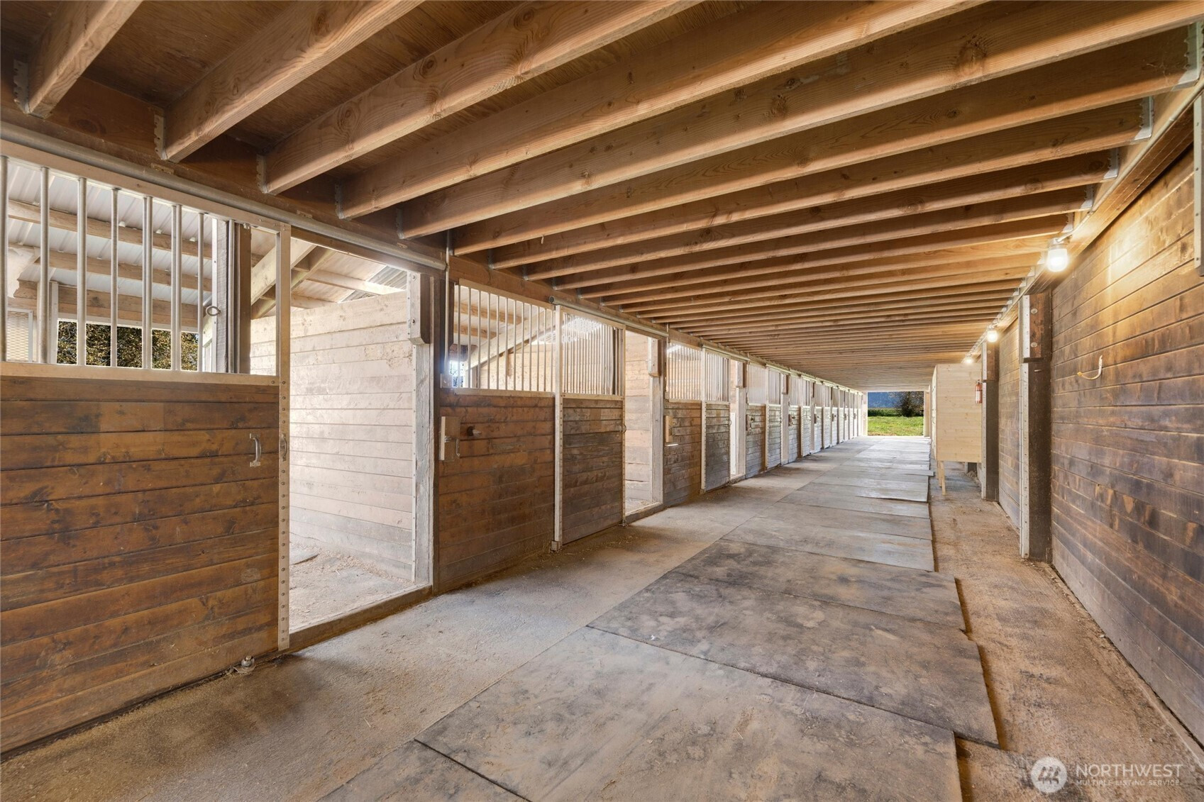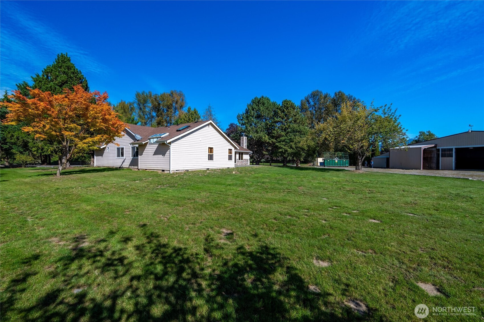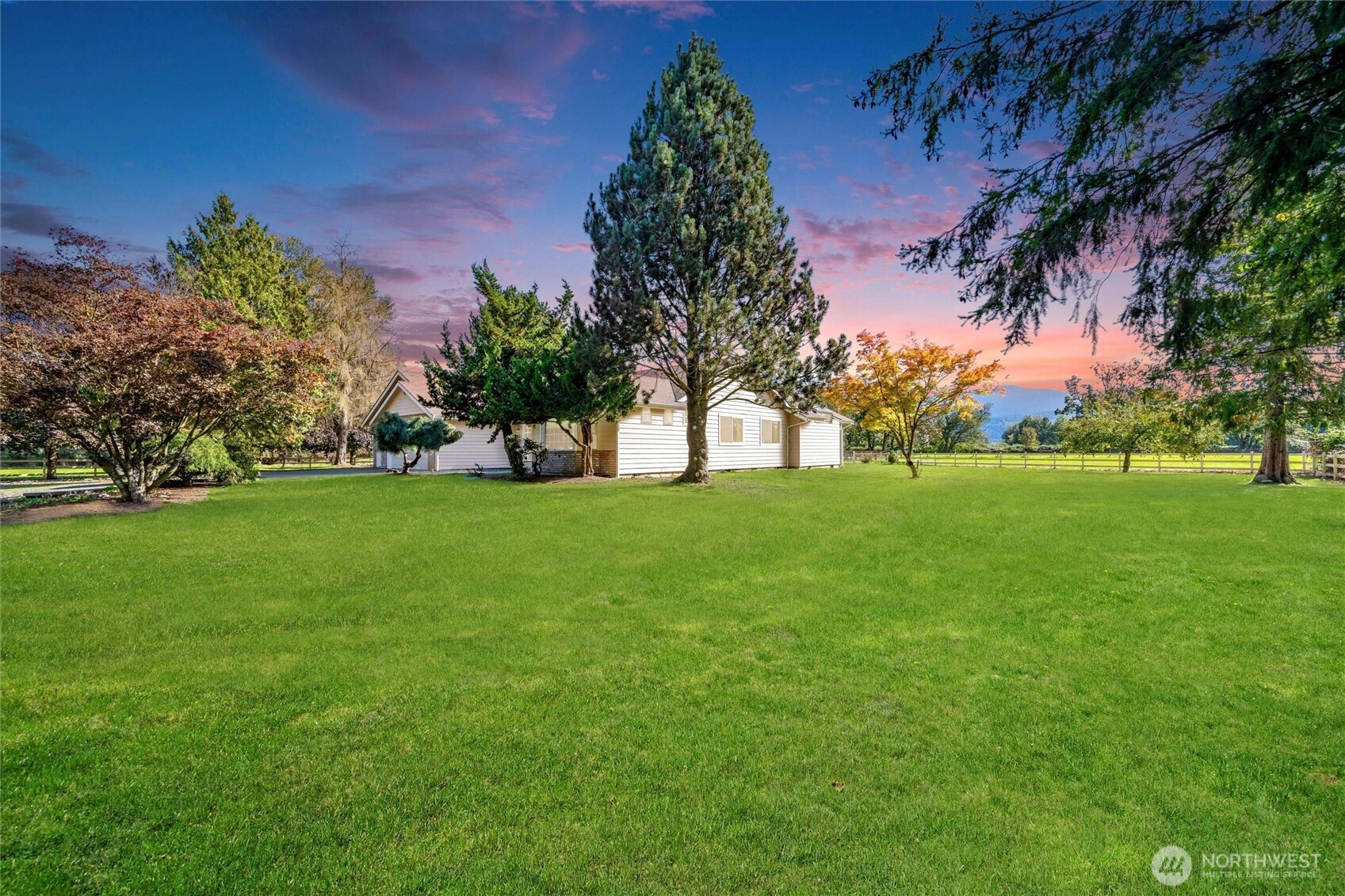 (650)533-3259*No water intrusion into the house from recent flooding* Welcome to Eagle Creek Farms. This stunning gated 13.9-acre equestrian property is conveniently located just minutes from the U.S./Canada border. Designed with equestrian enthusiasts in mind, the property includes an impressive 120’ x 90’ indoor riding arena with 21 stalls (12 stalls with runs), a heated tack room, hay storage, covered shaving bin, and a heated indoor wash rack. A 4-stall loafing shed complements the fully fenced and cross-fenced acreage, complete with multiple pastures making this a turnkey training or boarding facility. This beautiful estate features a single-level, 3-bedroom, 2-bathroom rambler with a spacious 3-car garage. The private primary suite includes an updated en-suite bathroom and direct access to the patio, offering serene views of the barn and surrounding property. The updated kitchen boasts quartz countertops and stainless-steel appliances, seamlessly opening to the inviting living room, complete with a cozy wood-burning fireplace. Designed for both comfort and functionality, this home provides a peaceful retreat in a tranquil rural setting.
