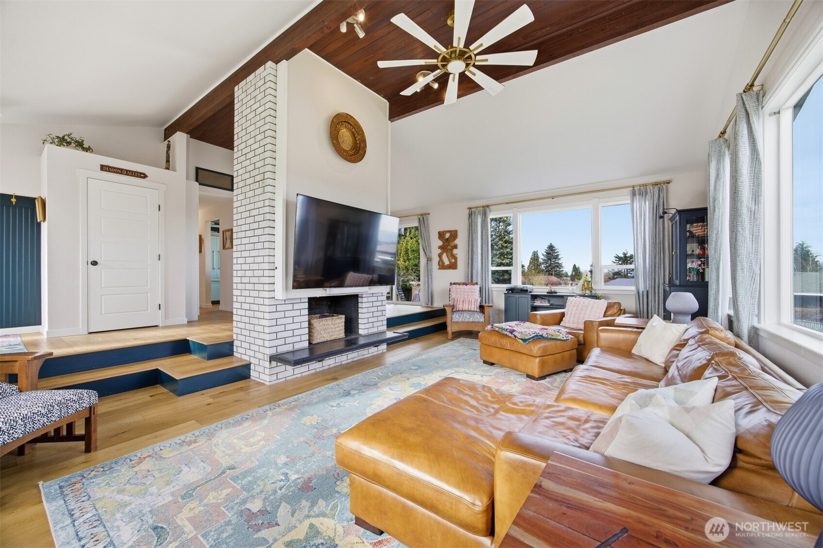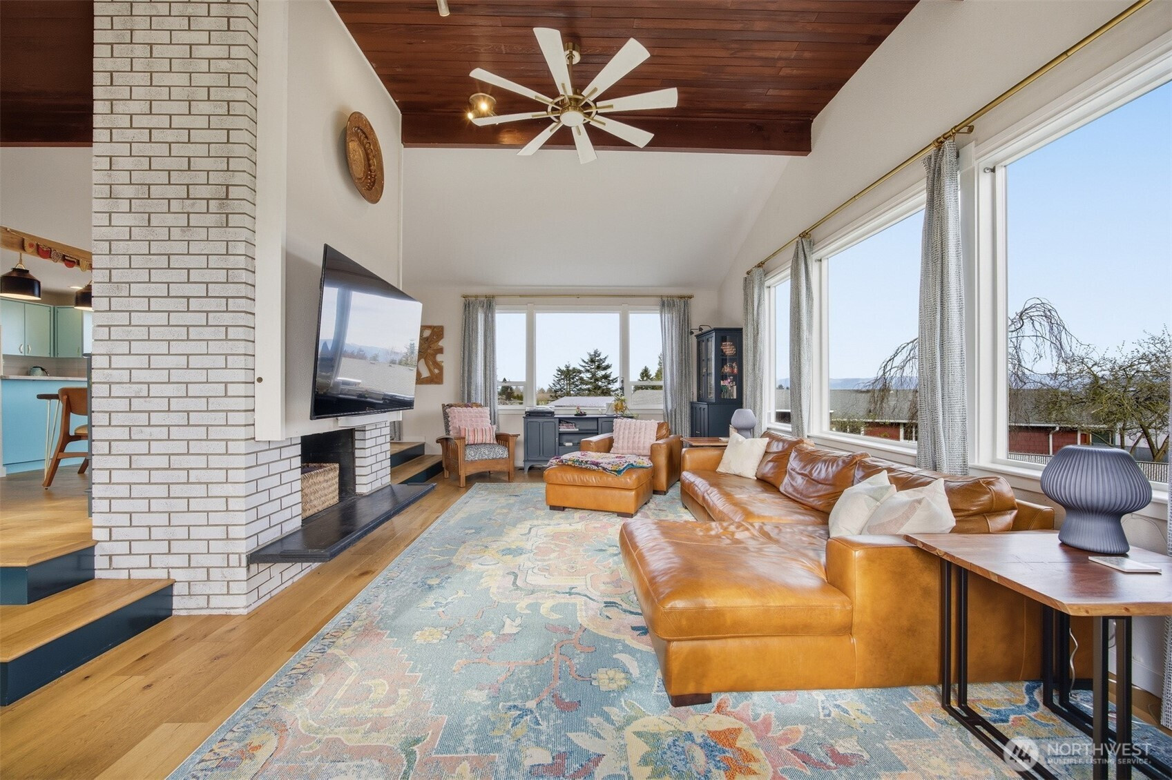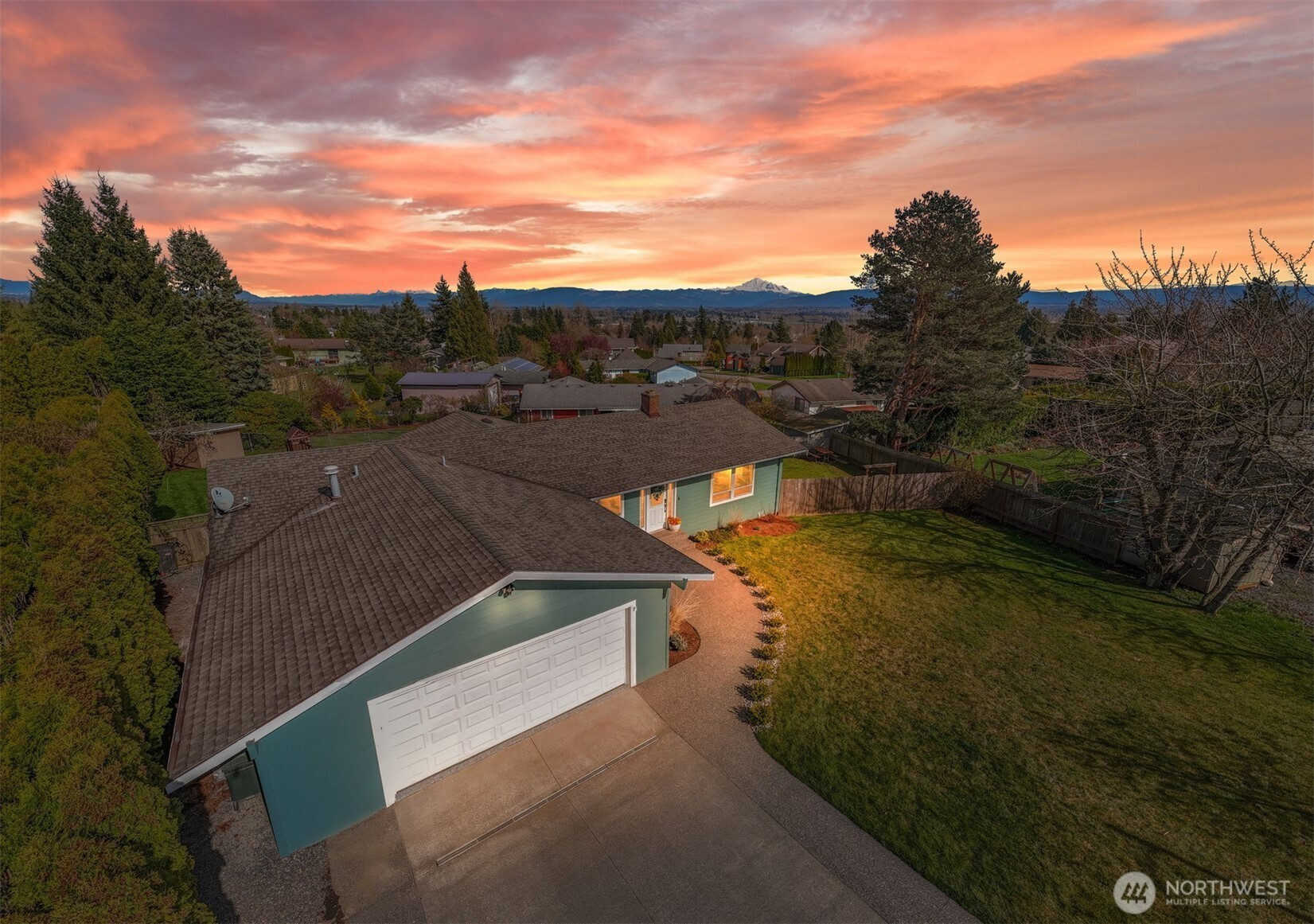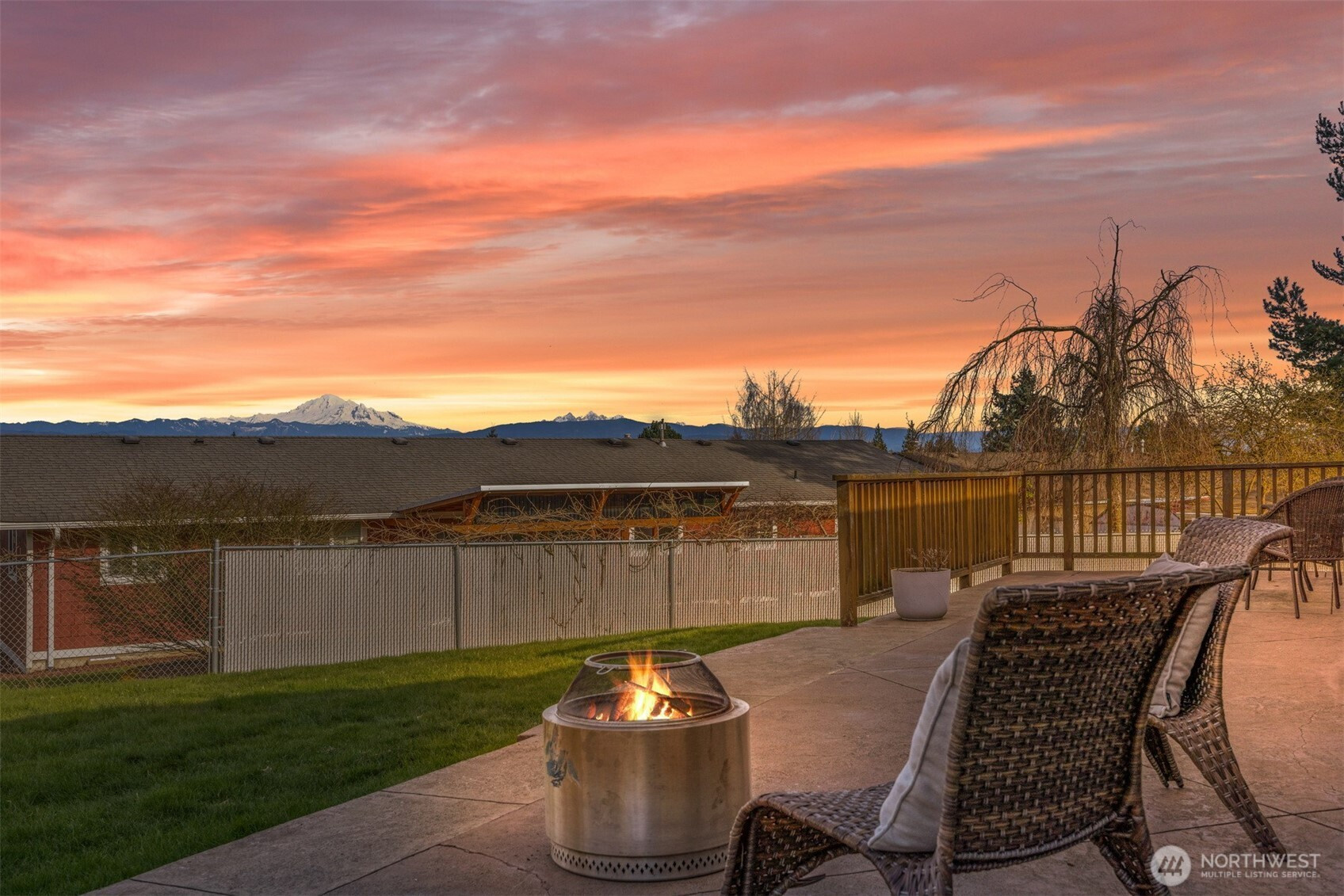 (650)533-3259That charming single-level home you've been looking for has arrived, and it comes with an amazing view! Meticulously updated and garnished with impeccable style, this inviting 3-bed / 2-bath rambler is waiting for you on a large sunny lot offering VIP seats to exhilarating sunrises over Mt Baker. The kitchen is gorgeous, standing vibrantly against a market full of neutral palettes. It boasts high-end touches including Taj Mahal quartzite counters, a Majestic gas range, built-in fridge + dishwasher, and mountain views through the window. The layout allows for easy communion with both the dining and living rooms, with the latter boasting vaulted ceilings, big picture windows, and a cozy fireplace. Beautiful hardwood floors stretch throughout the home including all three bedrooms. The primary bedroom comes with a full en-suite bathroom which, along with the full guest bath, are beautifully designed and feature radiant heated tile floors. The backyard is a dream for play, hosting, or just relaxing. A concrete patio stretches the full width of the home, with room for dining, a fire pit, and hot tub with plenty of space remaining. From there, step down to a sprawling, fully-fenced back yard overlooking the verdant valley between you and the mountains. Additional updates include lighting + plumbing fixtures, new interior + exterior paint, A/C, cabinets + epoxy floors in the attached 2-car garage, and more. All this just minutes from parks, I-5, and downtown Ferndale.