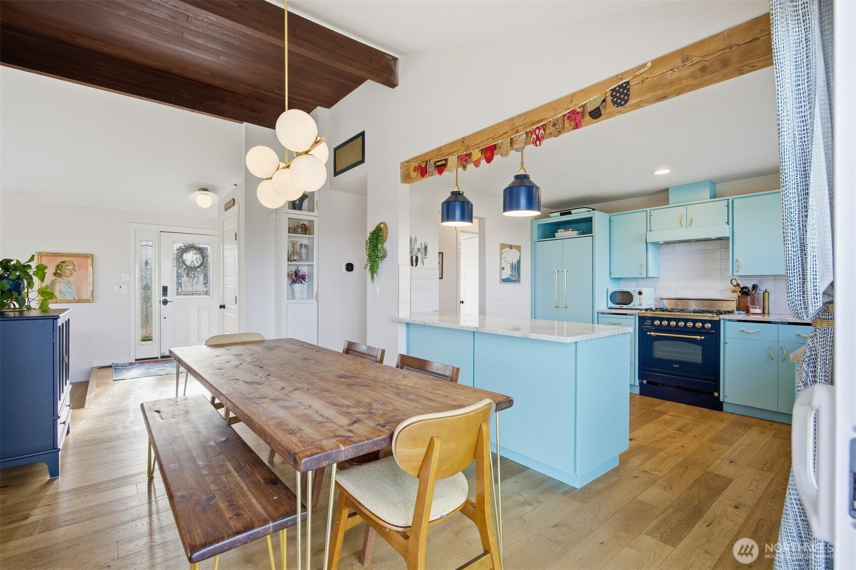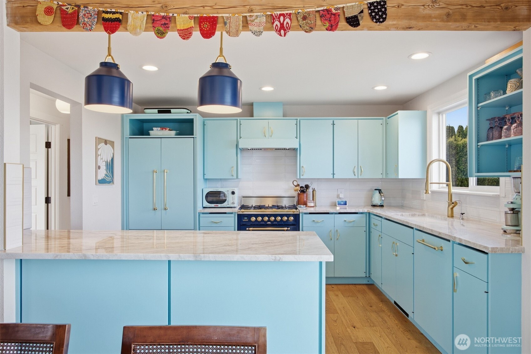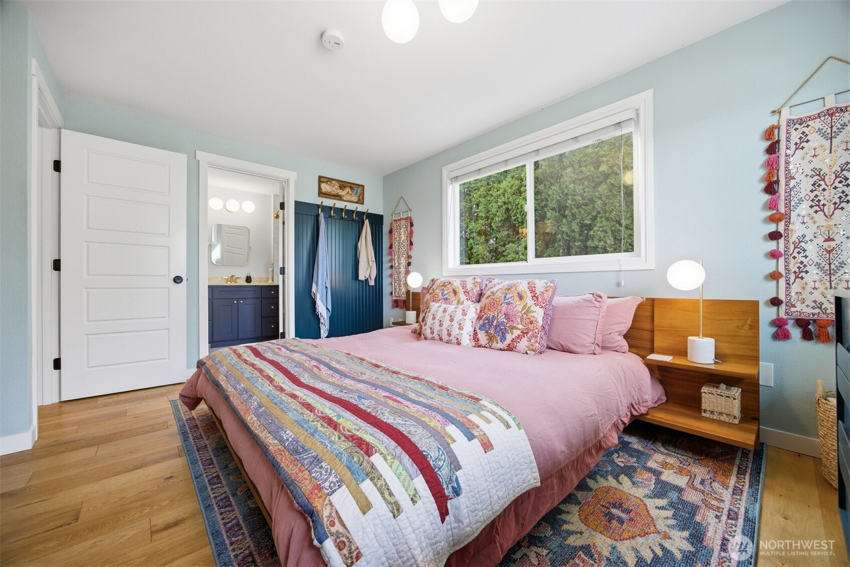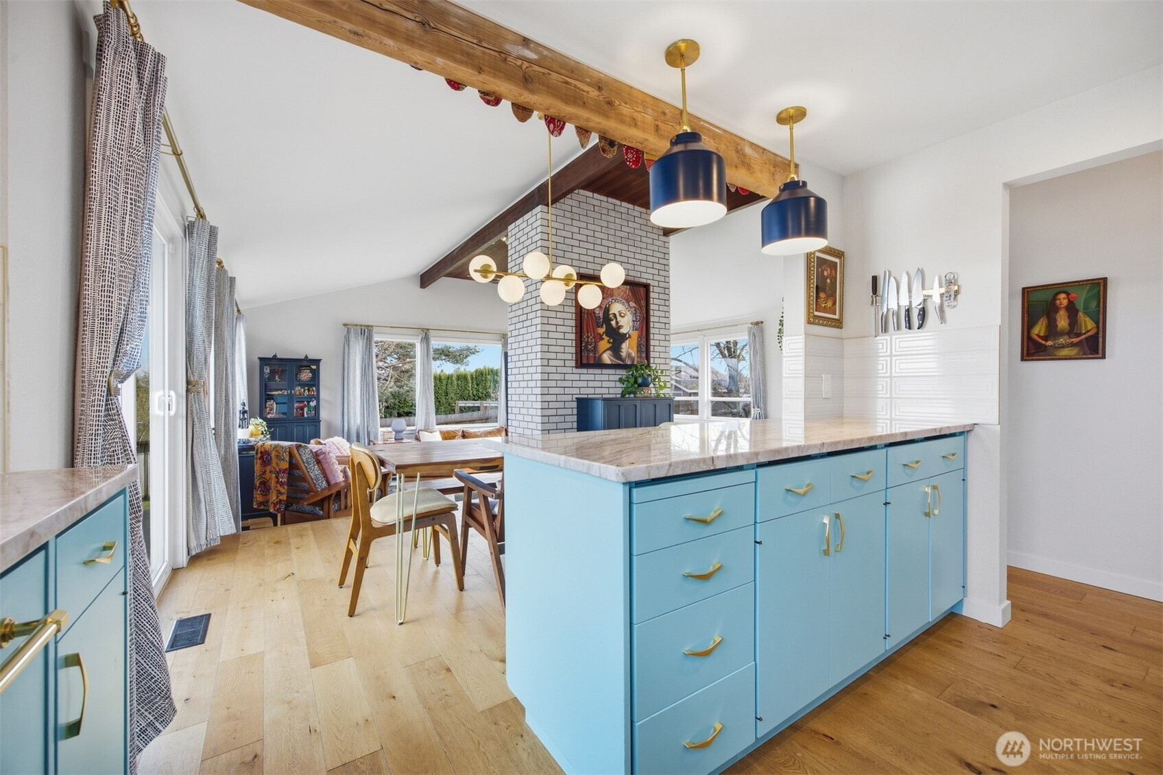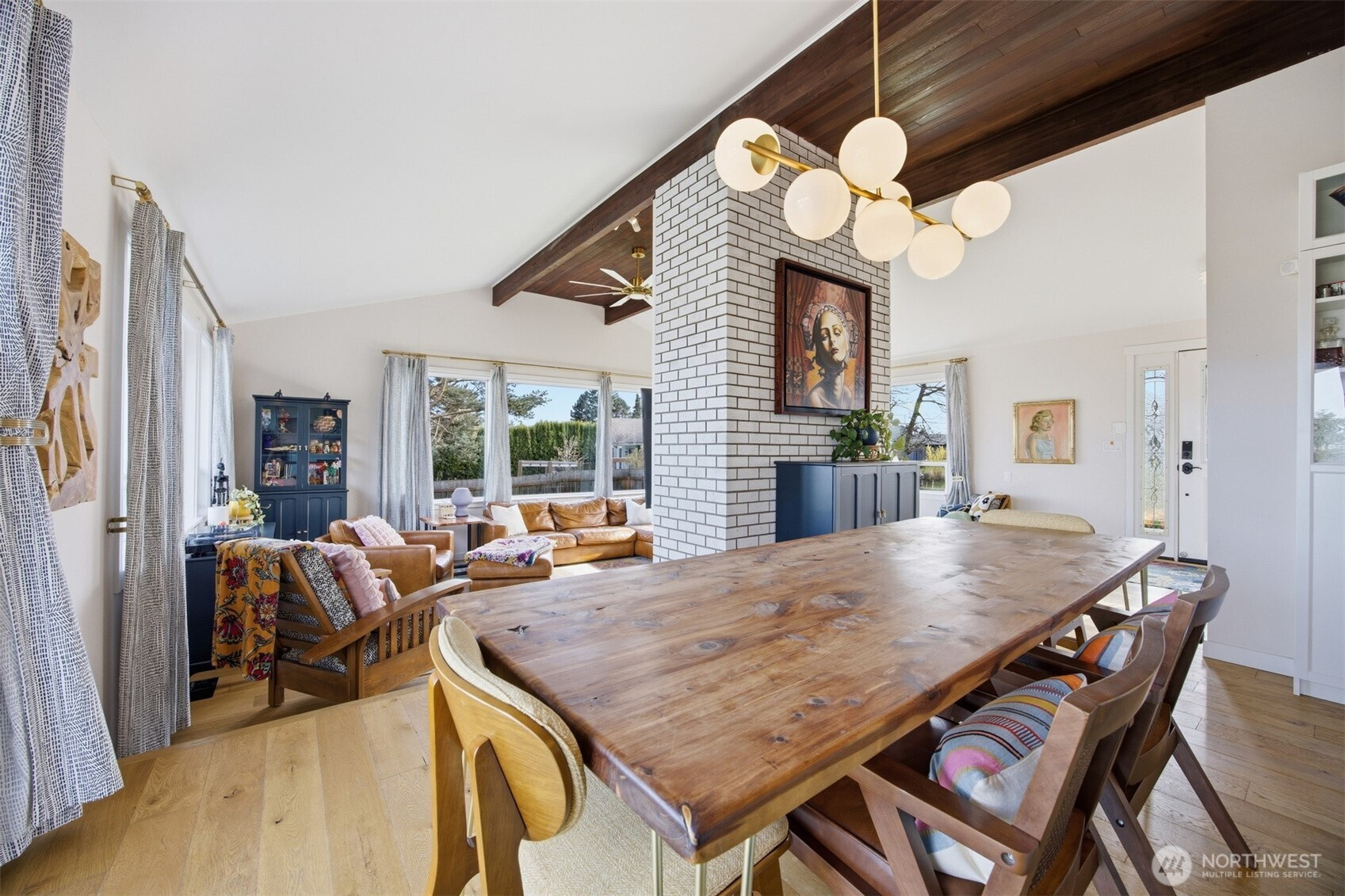 (650)533-3259That charming single-level home you've been looking for has arrived, and it comes with an amazing view! Meticulously updated and garnished with impeccable style, this inviting 3-bed / 2-bath rambler is waiting for you on a large sunny lot offering VIP seats to exhilarating sunrises over Mt Baker. The kitchen is gorgeous, standing vibrantly against a market full of neutral palettes. It boasts high-end touches including Taj Mahal quartzite counters, a Majestic gas range, built-in fridge + dishwasher, and mountain views through the window. The layout allows for easy communion with both the dining and living rooms, with the latter boasting vaulted ceilings, big picture windows, and a cozy fireplace. Beautiful hardwood floors stretch throughout the home including all three bedrooms. The primary bedroom comes with a full en-suite bathroom which, along with the full guest bath, are beautifully designed and feature radiant heated tile floors. The backyard is a dream for play, hosting, or just relaxing. A concrete patio stretches the full width of the home, with room for dining, a fire pit, and hot tub with plenty of space remaining. From there, step down to a sprawling, fully-fenced back yard overlooking the verdant valley between you and the mountains. Additional updates include lighting + plumbing fixtures, new interior + exterior paint, A/C, cabinets + epoxy floors in the attached 2-car garage, and more. All this just minutes from parks, I-5, and downtown Ferndale.